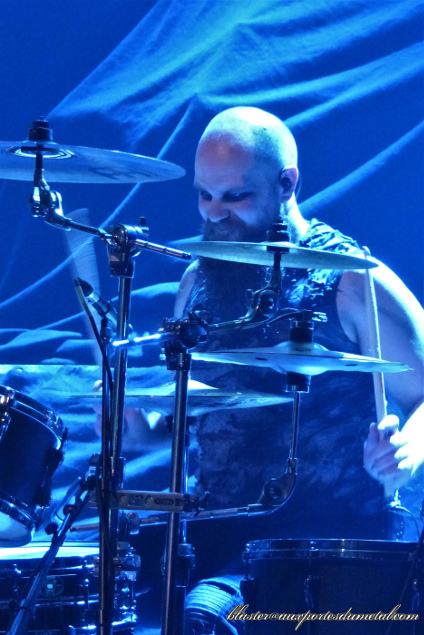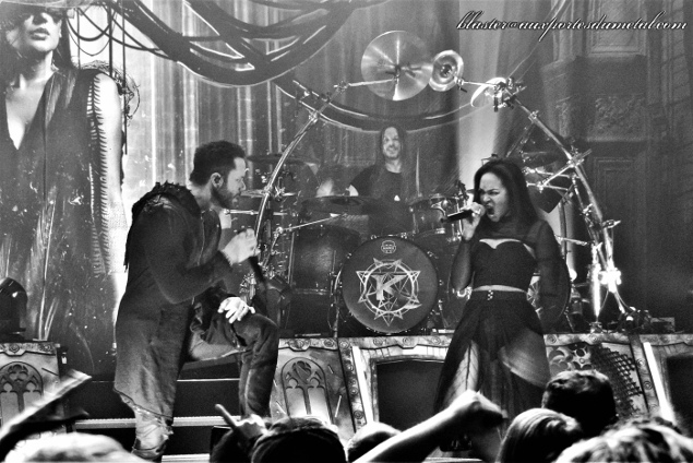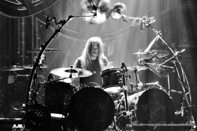 Dans deux jours sort The Awakening, nouvel album du combo. Et c'est donc avec de la nouveauté que le set démarre : on est immédiatement emporté par le véloce Opus Of The Night (que les fans ont pu découvrir depuis quelques semaines déjà). Super refrain, grosse énergie, light-show somptueux, belle scène avec le backdrop de l'album sur le point de sortir, la batterie surélevée... Bref, visuellement, ça en jette. Et, en plus, les musiciens font tout ce qu'ils peuvent pour galvaniser la foule. A ce propos, la salle n'est définitivement pas remplie. Je pensais que, sur la fin de la soirée, sur le temps des deux derniers groupes, ce serait le cas mais non. Popularité en petite perte de vitesse ou dommages collatéraux causés par les mouvements sociaux secouant notre capitale ?