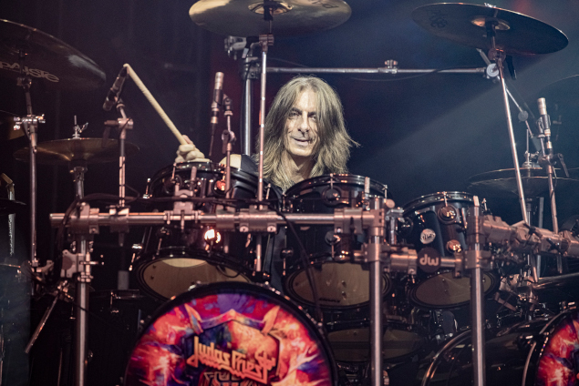 Setlist Saxon : Hell, Fire and Damnation Motorcycle Man Sacrifice There's Something In Roswell And The Bands Played On Madame Guillotine Heavy Metal Thunder Strong Arm Of The Law Crusader Dallas 1 PM Denim And Leather Wheels Of Steel Princess Of The Night Au tour de Judas Priest de montrer de quel bois il se chauffe ! Un rideau aux couleurs (et paroles) d'Invincible Shield nous cache la scène pendant que les premières notes de Panic Attack se propagent dans l'atmosphère puis, une fois l'intro sur bande terminée, le rideau tombe et l'on découvre les British de Birmingham en formation serrée sur les marches qui mènent à la batterie du puissant Scott Travis. "United they stand", c'est sûr ! Le son est un peu moins bon (un peu plus brouillon peut-être avec une batterie au rendu discutable) que pour Saxon mais pas désagréable et va vite s'améliorer (sans toutefois totalement attendre la clarté et le tranchant de celui dont bénéficiait le premier groupe, dommage). En tout cas, une chose est sûre, ce Panic Attack bien vindicatif constitue une entrée de choix pour démarrer le set.