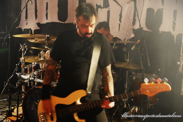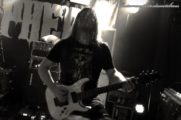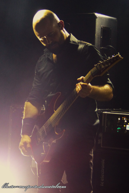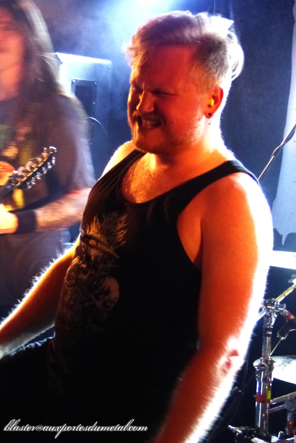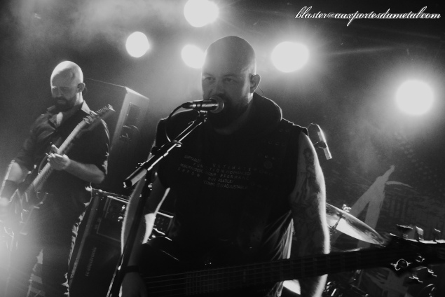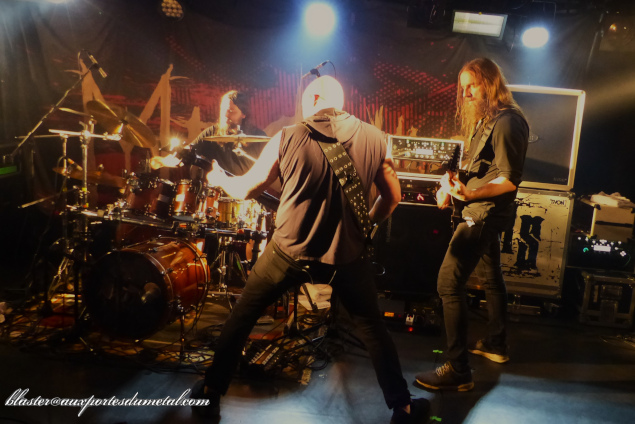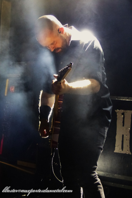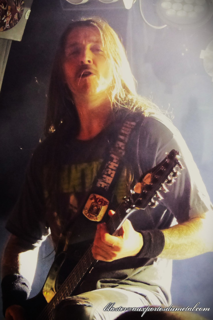 Jusque là, tout se passe bien. Le groupe est soudé et en forme. Les morceaux s'enchaînent avec succès, la salle compte une petite centaine de personnes (à vue d'œil) et se montre bien réceptive à la musique des Danois, l'ambiance est décontractée, chaleureuse, super sympa. Quelques gars - un brin éméchés - lèvent régulièrement leur bière en guise de salut en direction du groupe... un fan proposera même sa bière au chanteur se plaignant de la chaleur. Ce dernier la refusera gentiment : pas d'alcool pendant la tournée pour donner le meilleur ! Et la paire de guitaristes formée par Jakob Mølbjerg et Martin Buus nous régale bien en décochant des riffs aux petits oignons, sans oublier les excellents solos sur lesquels les deux compères se réunissent parfois. Donc oui, tout va bien... et la qualité monte encore d'un cran avec la suite du concert qui propose d'excellents titres (Soul Decision et 11 Dreams présents pour rappeler la "vieille époque" aux fans des disques sortis il y a dix-huit ou vingt ans... ou les nouveaux Through This Blackened Hatred - qui dépote - et Where Darkened Souls Belong - classe - qui comptent parmi les plus grandes réussites de Soundtrack For The End Times). On ne voit pas le temps passer et on se régale comme il se doit. Le groupe a l'air de passer lui aussi un très bon moment. Pedersen nous remercie chaleureusement de notre présence et ne manque pas de dire à quel point ils sont heureux et touchés de nous retrouver après une absence de dix ans.