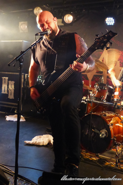 En tout cas, quel plaisir de retrouver Mercenary dans un tel cadre, avec une belle proximité ! On se sent privilégié. Et les fans vont pouvoir prolonger le plaisir à la fin du show en retrouvant tous les membres du groupe qui assurent eux-mêmes la vente de leur merchandising, serrent des mains, signent des albums et prennent des photos sans compter. Espérons que nous n'aurons pas à attendre dix ans pour remettre ça ! Setlist Mercenary : Burning In Reverse Through Our Darkest Days The Endless Fall Heart Of The Numb From The Ashes Of The Fallen Soul Decision 11 Dreams Through This Blackened Hatred Where Darkened Souls Belong Beyond The Waves Je vous l'avoue, il va être plus compliqué pour moi de vous faire un beau compte-rendu du concert de Hatesphere. C'est mal, vous pouvez légitimement m'en vouloir et me jeter des pierres virtuelles... J'ai d'abord loupé le début de leur set car j'étais au stand merch avec les gars de Mercenary qui, comme dit ci-dessus, vendaient eux-mêmes leurs articles (j'en ai d'ailleurs profité pour me procurer un album qui manquait à ma collection)... et, ces messieurs n'étant clairement pas avares en anecdotes, on a pas mal discuté. Gros manque de professionnalisme sur ce coup, je l'admets sans mal. J'étais essentiellement venu pour eux... et connaissais très peu Hatesphere. Cependant, je me suis tout de même glissé dans la salle pour voir ce que ce second groupe donnait... La réponse est simple : ils avoinent sacrément ! Mais leur musique me séduit moins. Je connais moins (pour ne pas dire "pas") les albums, la partition est plus brute de décoffrage, plus brutale, moins mélodique... elle ne manque pas d'efficacité mais me semble moins mélodique ou "intéressante" (terme à prendre avec des pincettes... d'où les guillemets).