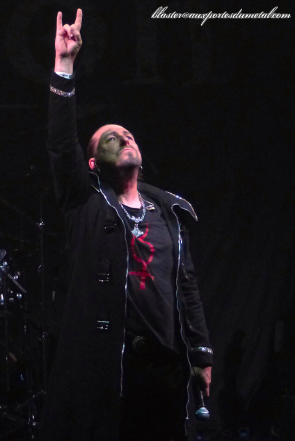 Avec sept personnes sur scène, il se passe toujours quelque chose. Ca bouge bien, les guitaristes se croisent, le bassiste Chris David se montre très enthousiaste, on sent beaucoup de complicité entre les musiciens qui jouent beaucoup les uns avec les autres... mais pas qu'entre eux. Vidal lance très régulièrement des regards amusés au public et sourit abondamment aux premiers rangs, par exemple. En tout cas, c'est un véritable plaisir de regarder tout ce beau monde s'activer. On ne s'imagine pas forcément en écoutant du Therion en studio à quel point leurs shows possèdent une véritable couleur rock'n'roll et se révèlent hyper chaleureux et fun. Mais surtout, c'est très pro. Quelle qualité dans l'interprétation ! Les titres récents (Ruler Of Tamag, Tuonela, Twilight Of The Gods... tous servis assez tôt dans le set) comme les plus anciens (Birth Of Venus Illegitima, Asgard et bien d'autres) sont joués avec force et conviction, tout en donnant lieu à des performances vocales impeccables. Et, bien entendu, le groupe nous invite à chanter de temps à autre, comme sur le final de Twilight Of The Gods, bien classe, où nous serons sollicités pour les chœurs... Je peux vous dire que nous aussi avons fait du bon boulot !