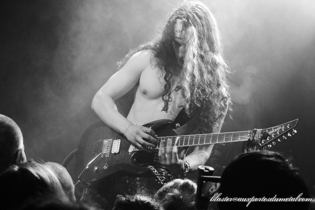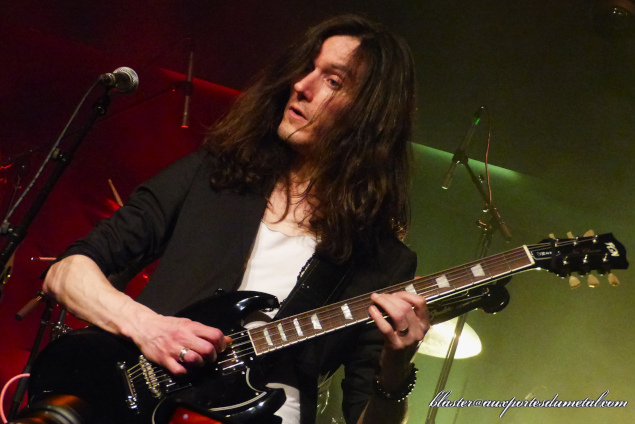 Et comme si c'est grosse douzaine de bons titres n'avait pas suffit (ouais, ils ont joué leur premier album en entier), v'là t'y pas qu'au deux tiers du set, Leo nous annonce qu'ils vont jouer un titre qui les a particulièrement influencés, titre qui a une résonance toute particulière ce soir-là. En effet, à la mémoire du patron Dio dont nous commémorions les quatorze ans de la mort, c'est le riff de Heaven And Hell qui résonne dans la salle. Et nous ne nous sommes pas fait prier pour beugler le riff et hurler les paroles. Un super moment assez émouvant, forcément. Mais le meilleur restait à venir parce qu'après la doucereuse Slave Of Sorrows, c'est l'intro de Creeping Death de qui-vous-savez qui m'a pété dans les oreilles. Ne me demandez pas si le groupe l'a bien jouée, je n'en ai pas la moindre idée : j'étais bien trop occupé à sauter partout et à beugler. Ouais, cette chanson a des effets dangereux sur moi. Jouissif, forcément.