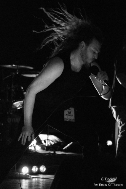 Le deuxième groupe de la soiré est Antharium. Le combo joue du black metal, pour ma part, ce n'est pas un style que j'aime sur CD, mais en live, c'est vraiment énorme (l'inexpérience parle !) L'ambiance commence à se réchauffer un peu, et le chanteur/hurleur demande au public de se rapprocher de la scène, demande à laquelle le public, dont moi même, obéira. Il restera tout de même une certaine distance, mais on sent que le public est un peu plus réactif, et c'est tant mieux ! Le son s'est amélioré pour cette partie et on distinguait bien les riffs. Le concert commence donc à devenir intéressant.