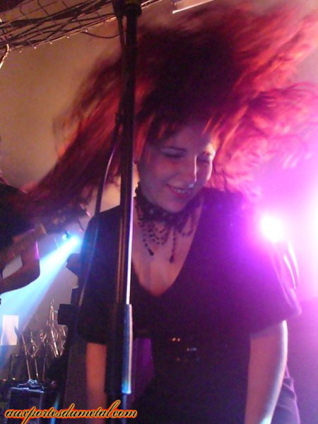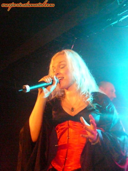 Mais pas le temps de se poser trop de questions, car c'est au tour du groupe à la énième chanteuse de faire son apparition, j'ai nommé Sirenia ! Et la foule continue à être en délire et cela fait sourire la jeune espagnole Ailyn qui s'est fait toute jolie pour l'occasion. Le groupe ouvre avec The Path To Decay, dernier single du dernier album. Et il y a un hic : soit Ailyn a un souci avec sa voix, soit c'est le son qui n'est, une fois de plus, pas au rendez-vous ! Et je pencherais plutôt pour la seconde option, car pendant les balances, on entendait bien Ailyn lorsqu'ils ont interprété l'une des chansons de la soirée. La jeune femme sourit, exécute son tour de chant avec quelques petits soucis de temps en temps, elle occupe plutôt bien la scène, mais comme ses consoeurs, n'a pas beaucoup de place pour s'exprimer. Elle ne parle que très peu au public, laissant Morten Veland le faire, une bien mauvaise idée. C’est d'une manière répétitive qu'il annonce chaque morceau, citant l'album dans lequel il se trouve et avec une tête à faire peur. Aucun effort pour ménager le public n’est fait. Il parle puis s'atèle à jouer de la guitare ou à grunter en faisant une tête d'enterrement, n'échange aucun regard ou sourire complice ni avec les musiciens, ni avec la chanteuse qui semble tenter de le décoincer. Quant au second guitariste, tout en restant de son côté de la scène, il se donne à fond, à en avoir tellement chaud qu'il ôte son tee-shirt. Il est frappant de voir une telle différence entre l'intériorité et l'extériorité de deux personnes partageant la même scène. Cependant, le groupe nous offre un show de qualité, chaque album est plus ou moins représenté. Le public acclame, Ailyn montre sa joie d'être sur scène et prouve à tous que c'est une bonne front-woman malgré sa voix si décriée car trop pop. Elle n'a pas encore su s'approprier toutes les chansons du répertoire, et il est bien dommage que sur l’intro de The Other Side, ils aient gardé la voix de Monika Pedersen, ça ne doit pas beaucoup aider ! Enfin, malgré cela, il faut aussi saluer Ailyn pour rester sur scène lorsqu'elle ne chante pas et d'occuper la scène aussi pendant ces moments là ! Après onze titres, le groupe quitte la scène, visiblement ravi de l'accueil qu'ils ont reçu (à part Morten bien évidemment qui ne laisse rien transparaitre) !
