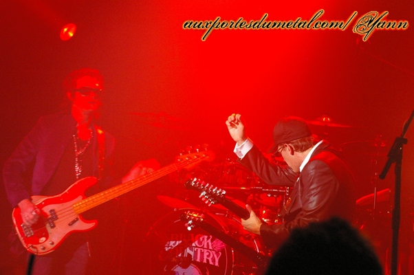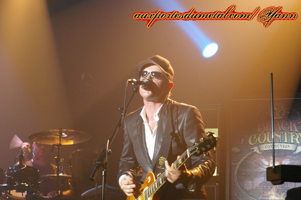 Vu la qualité exceptionnelle du deuxième album de Black Country Communion 2, quel fan de bon vieux hard-rock n'aurait pas été impatient de voir ce super groupe sur scène en France ? Unique passage parisien, le 19 juillet 2011, dans la salle du Bataclan. Organiser un concert à Paris le 19 juillet (date à laquelle il n'y a plus un Parisien sur la capitale) et afficher la place à cinquante-cinq euros étaient un peu risqué. Constat fait en passant devant la salle à 19h. Là où les Slash ou Within Temptation créent de véritables bouchons humains sur le Boulevard Voltaire, une heure avant le concert, les portes sont déjà ouvertes et il n'y a pas un chat... ou plutôt pas un métalleux. Vingt minutes avant le début du concert, le rez-de-chaussée du Bataclan est à moitié vide et le premier étage est condamné, certainement réservé aux guests VIP. Le public présent, aux alentours des 35-45 ans, arbore les t-shirts de Chickenfoot ou de Led Zep. C'est parti. Glenn Hughes débarque avec sa basse et son look de cinquantenaire teint et a gravement la pêche. C'est d'ailleurs lui seul qui jouera le rôle de leader et d'exciteur de foule au cours de ce concert, les autres étant beaucoup plus discrets.