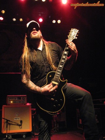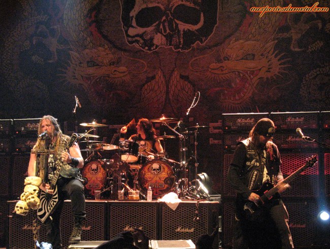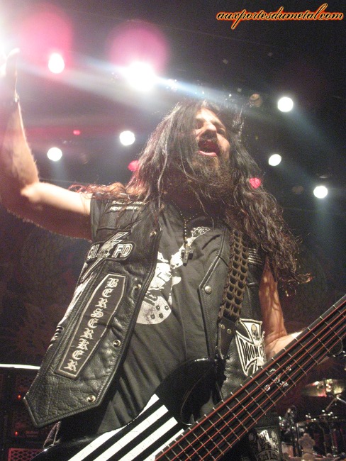 Sans prendre le temps de souffler après cette entrée en matière des plus réussies, les Américains enchaînent avec l'excellente Crazy Horse (extraite du dernier album) et c'est avec un sourire béat que l'on regarde s'agiter cette bête qu'est Zakk Wylde. Les autres musiciens savent s'affairer comme il faut de leur côté. Alors que Nick "Evil Twin" Catanese, le compagnon de toujours, est relativement discret en termes de jeu de scène, J.D. DeServio (à la basse) s'éclate, arpente la scène tel un sauvage échappé de l'asile (ça n'est pas une critique, ni une moquerie) et fait virevolter son instrument avec énergie. A la batterie, c'est le baptême du feu de Johnny Kelly (oui oui, le batteur de Type O Negative) qui est venu remplacer au pied levé Will Hunt parti enregistrer le nouvel album d'Evanescence... ah oui, ils existent encore eux ? Vraisemblablement. Les titres s'enchaînent sans temps mort et parcourent la discographie du groupe en privilégiant des albums tels que Mafia ou le tout dernier Order Of The Black (à eux deux, ils représentèrent plus de la moitié du setlist de la soirée) au détriment de vieux classiques comme Stronger Than Death ou 1919 Eternal, jetés aux oubliettes. Cependant, on n'a pas trop envie de se plaindre tant les titres joués ce soir sont excellents et constituent un set bien équilibré. On se régale à l'écoute des écrasants Overlord et Fire It Up, alors que les terrassants et plus enlevés Funeral Bell ou Parade Of The Dead s'avèrent particulièrement jouissifs dans leurs versions live. Le son est globalement bon même s'il manque un peu de clarté... remarquez, on s'en fiche pas mal, on n'est pas venu écouter de la musique classique ! Le chant de Zakk est un peu en retrait et ne semble pas surpuissant... paraît-il que le bonhomme était malade. Bon, là aussi, c'est perfectible, mais ça passe. La force de l'ensemble fait qu'on n'a pas le coeur a s'attarder sur quelques imperfections. En gros, on est quand même en train de se manger une bonne grosse claque ! On notera la présence de la ballade In This River, jouée ce soir dans une version totalement différente de celle que nous avons eu à l'Elysée Montmartre en 2005 (et disponible sur le DVD filmé de soir-là). En effet, le piano présent sur la version studio de ce morceau est, pour une fois, sur scène et Zakk lache donc sa guitare le temps de nous faire une petite démonstration de ses talents (réels) de pianiste. Puisque nous en sommes aux comparaisons avec le concert donné par BLS il y a presque six ans de cela, je dirais que le show de ce soir est globalement meilleur. Je sais que certains ont râlé au sortir de la salle parce que les Américains n'ont joué qu'une heure et une vingtaine de minutes, et que nous n'avons pas eu le droit à un rappel, mais il n'empêche... Déjà, le groupe brode ou délaye bien moins que la dernière fois. Et oui, parce que certaines personnes semblent oublier que le concert donné en 2005, bien que plus long (d'une demi-heure environ), ne fut absolument pas plus riche (un long solo inutile en guise d'intro, de longues pauses entre les chansons... et au final quasiment le même nombre de titres joués). Le concert de La Cigale est plus à mon goût car le setlist me plait davantage (question de goûts), et également parce qu'il est plus direct et carré et ne s'embarrasse pas du superflu... enfin presque. Oui, c'était presque le sans faute si monsieur Wylde ne s'était pas senti obligé de nous servir un (trop) long solo de guitare ultra poussif/répétitif/démonstratif, globalement stérile, sans feeling et sans intérêt. De la part d'un tel guitariste, un solo aussi pauvre que celui-là laisse perplexe... Heureusement que la suite du show releva le niveau de belle manière avec de petits brûlots comme Godspeed Hellbound (excellente), la grosse surprise The Blessed Hellride ou une Stillborn dantesque en guise de final.