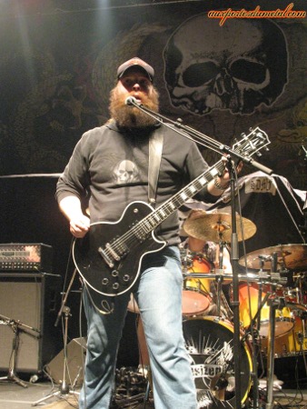 Zakk Wylde et son groupe Black Label Society se font plutôt rares par chez nous, c'est un fait. Alors que les Américains entament la treizième année de leur prolifique carrière (huit albums studio, un album live, quelques DVD, et je ne compte pas les compilations...), ils ne viennent nous rendre visite que pour la deuxième fois. Si l'on veut bien prendre en compte que l'album Order Of The Black est probablement l'un des disques les plus réussis du groupe, et que ces messieurs nous font le plaisir de passer dans la belle salle parisienne de La Cigale, on se dit qu'il serait vraiment malvenu de bouder un tel événement. Les fans ne s'y sont d'ailleurs pas trompés puisque le concert est complet depuis quelques mois déjà... Parlons-en des fans. En cette journée du 25 février, ils sont en grande forme. Très tôt dans l'après-midi, beaucoup s'amassent devant l'entrée de la salle de concert, et une bonne demi-heure avant que la première partie n'investisse la scène, ils lancent déjà quelques petits pogos, comme ça, pour passer le temps. Impressionnant... et dire la soirée n'a même pas encore débuté ! Cela promet. On sent l'excitation et l'agitation dans l'air, le doute n'est pas permis: ce soir, l'ambiance va être très chaude. C'est aux Anglais de Godsized d'ouvrir les hostilités et force est de constater qu'il les ouvrent bien comme il faut ! Nos amis British n'ont pas fait le déplacement pour rien tant l'accueil du public est chaleureux. C'est bien simple, l'ambiance dans la salle est conforme à celle que l'on pourrait attendre d'un show donné par une tête d'affiche. Et pour cause, le quatuor propose un set bien emmené et réjouissant, heavy, et servi par de grosses guitares comme on les aime. Très vite, il apparaît clairement que le choix de Godsized comme apéritif avant Black Label Society est tout sauf une erreur de casting. La musique proposée par nos voisins d'outre-Manche est en effet très proche de celle de la bande à Zakk Wylde. Au menu: deux guitaristes, qui se chargent tous deux des rythmiques et des soli (l'un des deux s'occupe aussi du chant) secondés par une section rythmique bien solide, du gros riff, de la barbe et des casquettes. Les morceaux sont accrocheurs, l'ensemble sent bon le gros stoner rock et groovy gonflé au heavy metal, et il est extrêmement facile de se laisser embarquer par la prestation de Godsized. Le temps passe vite lors de ce set parfaitement rodé, et des titres comme Walking Away, Bleed on the Inside, Brother In Arms ou The Last Goodbye (dédiée à Gary Moore qui vient de nous quitter) ont vite fait de convaincre un auditoire ravi. Les musiciens ne devaient être trop mécontents non plus si l'on en juge par leurs mines réjouies au moment de quitter la scène, ainsi que par le joli saut dans le public effectué par le batteur au moment des aux revoirs. Je n'avais jamais entendu parler de Godsized avant ce concert, mais il est évident que je vais suivre leur évolution de très près... il n'est vraiment pas si courant d'être à ce point emballé par un groupe de première partie inconnu. Je regrette même de ne pas être allé me procurer un disque au stand merchandising...