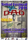En ce chaud samedi d'août, une horde de furieux sudistes nommée Tribal Roch, association des Alpes Maritimes militante en faveur de toutes les bonnes musiques, dont bien sûr le métal, s'est offert cette année la venue des danois de D-A-D. Rares sont leurs incursions sur le territoire français, aussi les fans frustrés comme moi sont aux anges, d'autant plus quand ils passent dans un cadre intimiste à vingt kilomètres de chez vous ! Me voici donc arrivé vers 14h sur ce site bucolique, le Parc Daudet, sous les pins parasols au milieu des villas (qui vont bien déguster !), alors que Marco et Gonzo, les têtes pensantes du Tribal Roch, sont aux manettes des réglages et préparatifs de la fête. A l'affiche en plus des danois, sont venus les Toxxic Toyz et Renaud Hantson avec son Furious Zoo. Hommage également à Bernie, ami du Fest décédé il y a peu, et qui aurait du jouer avec Marco et consorts. L'asso a fait les choses bien, et derrière une scène conviviale se trouvent les tentes des rockstars du jour, ainsi qu'une cuisine de campagne avec chef atitré (au menu, faux-filet aux champignons... pas mal, non ?). Sur le stand boissons/nourriture, l'asso a également fait bosser les commerces locaux, avec rien que des beaux produits... bel esprit. J'attends fébrilement les Scandinaves avec mes bouteilles de champagne et mon dictaphone, et ça fait seize ans seulement... A 15h arrivent enfin les quatre danois, tandis que Toxxic Toyz termine un soundcheck aussi pointu que pro. Les gus n'ont jamais pris les pieds plus au sud que Paris. On se serre la pogne, on vaque, on discute. Jakob me demande où il peut aller à la plage, Jesper où il peut faire la sieste, Stig où il peut faire du shopping, et Laust ne demande rien, il sourit. Ca fait presque bizarre de les voir "en civil", si j'ose dire ! Nous accueillons donc D-A-D dans leur tente, avec deux bouteilles de champagne que je viens de coller au frais... leur frigo était déjà bien plein... bière, vodka et jus de carotte (oui oui). Nous démarrons l'interview illico, alors que le groupe signe tous mes cds (dont un spécial dédicace pour ma p'tite maman, ce qui fait bien marrer le groupe, qui propose sur le champ d'intituler le prochain disque du nom de mon regretté papa... ça démarre fort), puis ils partent au soundcheck.