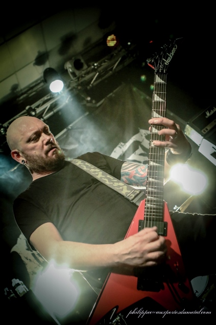 La réaction du public est sans équivoque, quelle symbiose ! Il n’est pas difficile de comprendre que le public est venu pour les “Loud” (les Benighted aussi ma foi). Stéphane Buriez possède ce charisme, cette maîtrise de l’interraction avec le public qu’on peut lui envier. Stéphane se sera quand même inquiété de la forme du public plusieurs fois avec son : “Vous avez encore du jus ?”. A chaque fois la réponse est tonitruante. Eh oui, il en redemande… et nous aussi.