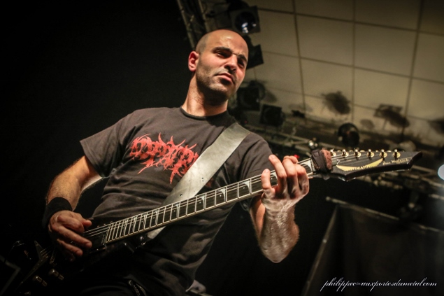 7- Loudblast Les “Loud” entrent en scène à minuit et quelques. Loudblast n’a rien perdu de sa superbe. Bien sûr, ce ne sont plus tout à fait les mêmes car seul Stéph (chant et guitare) et Hervé (batterie) sont d’origine (même si Hervé n’a rejoint Loudblast qu’un peu plus tard). Au bout de deux chansons, Stéph demande au public s’il a encore du jus… tu m’étonnes ! Ca fait déjà six heures que le Deathfest a commencé et qu’on les a passées à être debout. La question est donc extra pertinente.