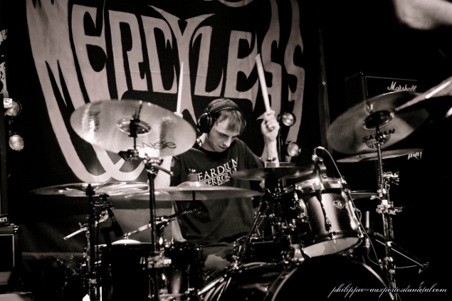6- Mercyless Mercyless... la surprise ! Car en fait, je n’avais même pas remarqué que le groupe était à l'affiche ce soir. C'est vers 23h que la formation emmenée par Max Otero (chanteur, guitariste) entre sur scène et va déchirer la place. Ils ont le gros son, une grosse énergie et nous livrent un set de grande qualité. Ah pour moi, ce groupe est toute une histoire. J’étais jeune quand Mercyless officiait et je n’ai jamais eu l’occasion de les voir quand j’aurais voulu… à leurs débuts. C'est une belle surprise pour moi.