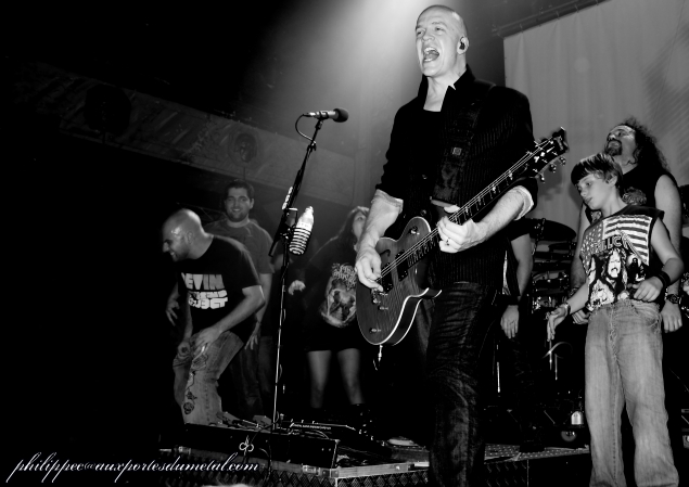 Suit une série de titres (Truth, Planet of the Apes et Life) qui fait monter le Rockstore en température, tout comme Where We Belong, qui sera le premier titre tiré d'Epicloud joué ce soir, son refrain est même repris par une partie du public. Le divin Devin et ses compères enchainent avec le très rock'n'roll War puis le metallique Vampira, ce brûlot est une pure tuerie extraite de l'album Synchestra... Le grand Devin repère deux jeunes fans dans le public, puis les fait monter sur scène. Il essaye de les faire parler mais, impressionnés par le géant, ils ne sortiront que quelques mots. Aux deux gamins va s'ajouter une bonne partie de la fosse car Devin va appeler ses fans à le rejoindre sur scène sur le dynamique Lucky Animals. Voilà une belle communion entre le groupe et ses fans qui se termine par un joyeux foutoir sur scène...