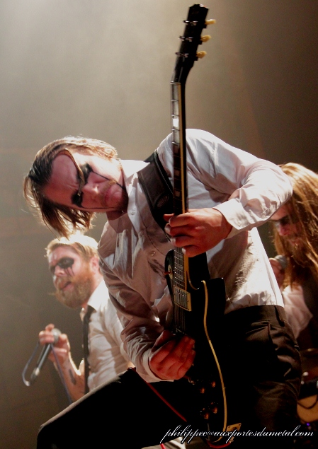 Outre le fait que tous soient maquillés dans un style rappelant King Diamond, leur musique est un mélange de Black Metal, de Rock Seventies et de Heavy Mélodique. En fait, c'est la présence des deux chanteurs : l'un extrême, l'autre clair, qui apporte le côté original à leur musique... Fear & Loathing et Through the Peephole, les deux premiers titres joués sont sympas, mais pour moi, le set ne commence à être plaisant qu'à partir de Father Serpent, un brûlot aux accents Black Metal, avec une mélodie et un refrain très accrocheurs. Je ne sais pas qui de Ronny ou Fredrik est à la lead guitare sur ce titre, mais le solo effectué est magnifique.