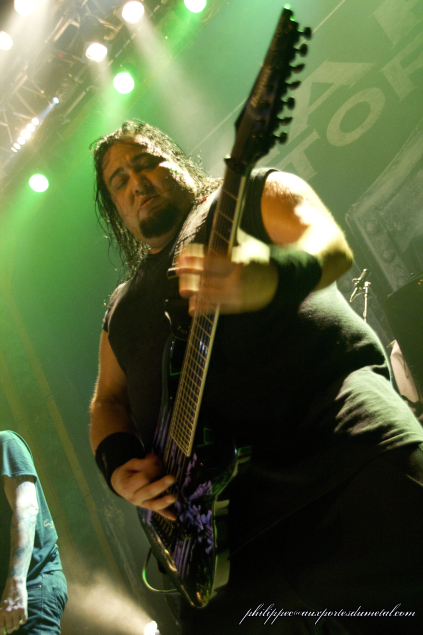 Le son aussi est au rendez-vous, les riffs de Dino nous découpent de façon chirurgicale. Le set est intense, les titres s'enchainent, Dino nous fait un petit discours puis Fear Factory entame Demanufacture. Là, on sent clairement monter le plaisir dans le public. A ce brûlot suivra Self Bias Resistor et Zero Signal, cette série de trois titres extraits de l'album Demanufacture, fait exploser le Rockstore, les fans sont aux anges.