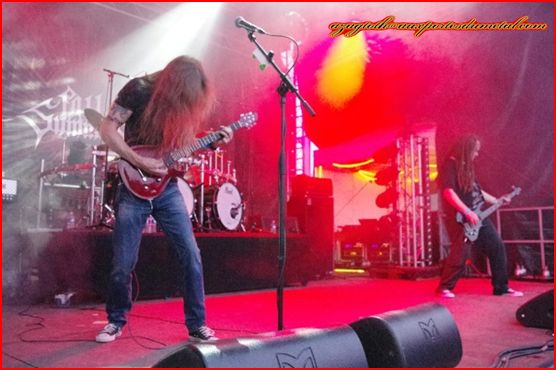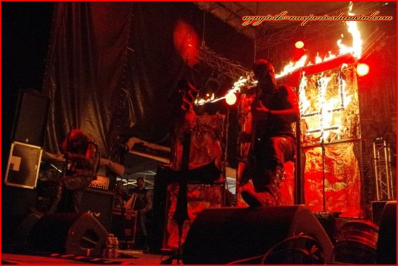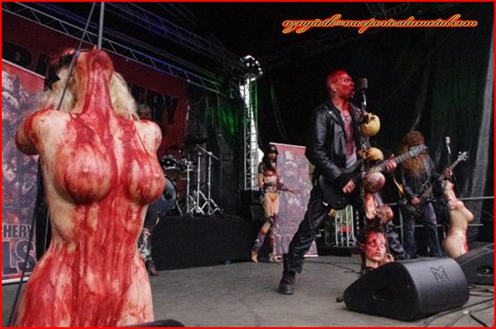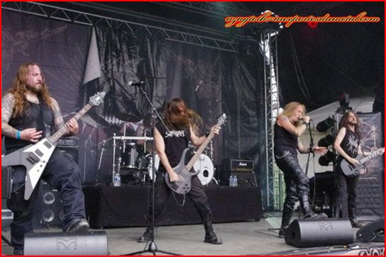 A l’arrivée des Allemands de Debauchery, c’est là que les choses sérieuses commencent enfin : une scène bien garnie qui donne une ambiance très particulière même en plein milieu de journée, des musiciens sanguinolents et survoltés pour un set énergique dans un style death n’roll qui déboîte comme il faut. Autant sur disque je ne suis pas spécialement fan, autant en live c’est totalement captivant. Le frontman communique très bien avec le public et ça fait plaisir.