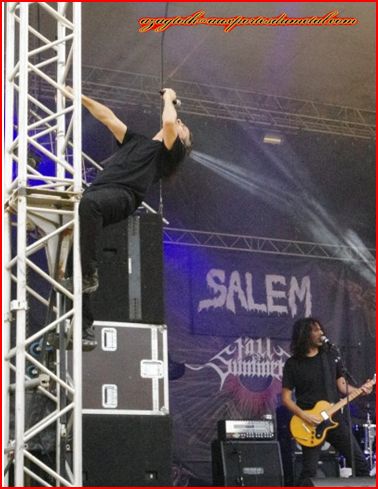 On passe à la grande scène pour le premier concert avec Salem, précurseur du doom/death israélien avec presque trente ans d’existence. Ne connaissant le groupe que de nom, je suis agréablement surpris par l’énergie qui se dégage. Ça bouge dans tous les sens, notamment le chanteur qui ne sait plus quelle pitrerie inventer pour se faire remarquer. Etonnant pour un groupe de doom. Le chant clair m’a paru totalement inutile par contre.