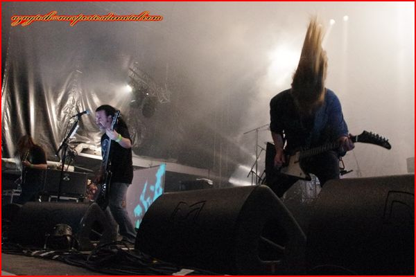 Borknagar entame la nuit de vendredi. Le groupe n’a pas joué en France depuis très longtemps et on retrouve avec plaisir cette bande de vikings corpulents et festifs, l’imposant ICS Vortex manifestant un entrain et une énergie qui font plaisir à voir. Je ne sais pas si c’est sa voix qui porte particulièrement, mais elle m’a semblé surmixée tout au long du set. Fort heureusement, il chante juste et aussi bien que sur disque.