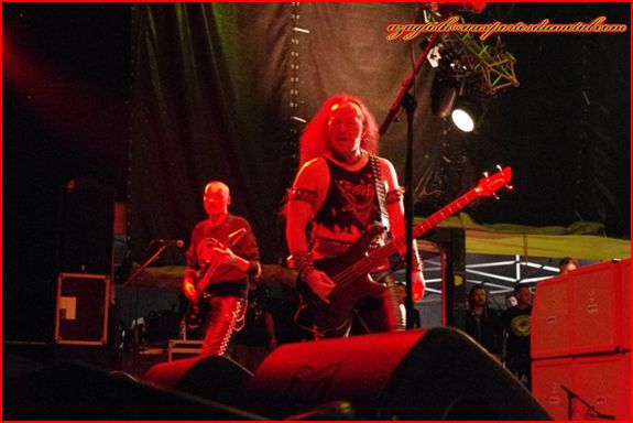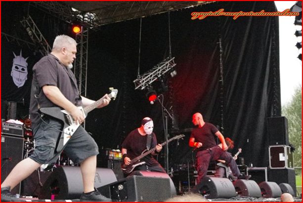 C’est donc avec Exumer que j’ai vu en premier sur la grande scène (Blackwaters), sous un ciel nuageux mais pas menaçant. Les inconditionnels du speed/thrash connaissent sûrement ce groupe avec son classique Possessed By Fire (1986), qui livre ici un set énergique avec un petit wall of death et pas mal de circle pits dans l’assemblée. Ils annoncent que c’est leur dernière date de l’année en France.