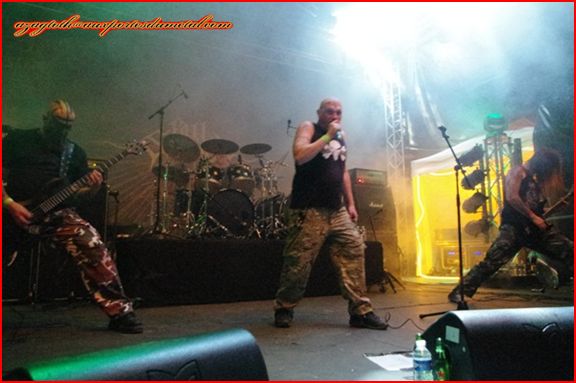 Aura Noir prend le relais de l’autre côté de la colline. Carl-Michael Eide, Ole Jørgen Moe, Rune Eriksen -alias Aggressor, Apollyon et Blasphemer- ce sont quand même trois légendes vivantes du black norvégien qui se tiennent devant nous, accompagnés du batteur d’Obliteration. Un set black/thrash finalement très rock n’roll attitude, qui en fera headbanger plus d’un sous le soleil couchant.