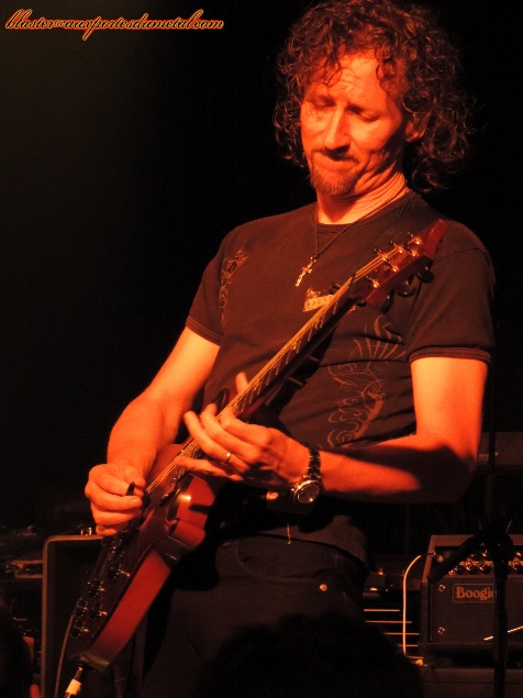 Les amateurs de rock progressif avaient bien noté dans leur agenda que le 14 octobre 2014 serait l'occasion d'accueillir pour la deuxième fois (depuis qu'il existe) le super groupe de rock progressif Flying Colors. Un deuxième album sous le bras, le quintet termine sa petite tournée promotionnelle avec une date parisienne... Deux des musiciens de Flying Colors (Neal Morse et Mike Portnoy) sont déjà venus nous voir un peu plus tôt cette année pour un concert exceptionnel donné avec Transatlantic. Quel plaisir de les retrouver ce soir accompagnés des excellents Steve Morse, Dave LaRue et Casey McPherson... D'autant plus qu'on se souvient (enfin ceux qui y étaient se souviennent) à quel point le show donné au Trianon il y a deux ans avait été bon. Mais avant de retrouver cette dream team, commençons avec John Wesley et son groupe. John Wesley est un guitariste, chanteur, compositeur américain qui, outre sa carrière solo, a œuvré avec Fish et Porcupine Tree. Après avoir fait la première partie de Marillion pendant plusieurs années, on le retrouve sur cette tournée de Flying Colors. Il est entouré de Sean Malone à la basse, Mark Prator à la batterie et Dean Tidey à la guitare. John remercie le public et a l’air content d’être là. Comme il l'explique lui-même, le lien qui l'unit à la France est fort. Ici, c'est un peu sa résidence secondaire et il adore venir jouer chez nous depuis plus de vingt ans. Il parle cependant assez peu et nous explique qu'il a peu de temps et veut nous présenter un max de musique. Il joue quelques morceaux de son dernier album Disconnect. Je ne connais pas du tout, mais je trouve que c’est assez bon dans un style qui rappelle un peu Porcupine Tree justement. Il chante bien et assure une bonne moitié des solos, laissant les autres ainsi que les passages nombreux de slide à son collègue Dean. Le couple basse/batterie assure une bonne rythmique, d’une précision de montre suisse. Le tout manque un peu de décontraction et de communication avec le public mais est très chaleureusement reçu. Un concert plaisant.