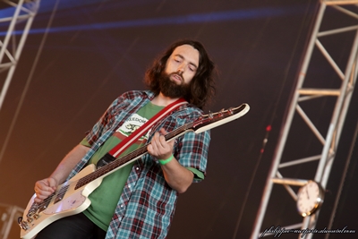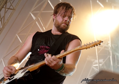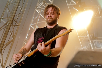 Angelus Apatrida (Mainstage 2 - 10:30) (Lurk) Ça y est, premier jour d'un week-end qui s'annonce long ! Après une attente sous un soleil déjà de plomb, les vigiles nous laissent progressivement passer sous ce magnifique échafaudage prenant des airs d'église. C'est bien la première fois que je vais communier, et avec quel empressement ! Premier concert de la journée, les jeunes Espagnols d'Angelus Apatrida font résonner leur thrash sur la mainstage 2. Je m'approche, et profite de leur énergie communicative pour me réveiller dans la fraîcheur toute relative de cette fin de matinée. Les Espagnols nous servent une musique tonique, un set carré. Rien à redire, pour un premier groupe, c'est très agréable. On remarque qu'ils ont déjà un public conquis. Setlist d'Angelus Apatrida: 01. Violent Dawn Mars Red Sky (The Valley-10:30) (philippec) Comme chaque année, l'ouverture du site ne se fait qu'une demi-heure avant les premiers concerts. En plus, n'ayant eu le pass presse que la veille, j'ai dû faire la queue pour récupérer mon pass photo. Une fois le sésame entre mes mains, je me rue vers The Valley pour y voir le groupe de stoner français, Mars Red Sky. J'arrive sous un chapiteau pratiquement plein, les Bordelais jouent leur troisième titre, Marble Sky. Le public semble hypnotisé par la musique du trio... je suis dans le pit pour prendre quelque photos mais j'ai du mal ! Mes membres sont pris de tremblement ma tête se met à bouger toute seule dès l'entame de Hovering Satellites, un titre à la fois puissant et groovy. L'osmose est faite entre nous et les musiciens de Mars Red Sky, le set se termine en vraie messe avec The Light Beyond, long titre aux ambiances envoûtantes. Comme le groupe 7weeks l'année dernière, même heure, même endroit, Julien Pras (chant, guitare), Jimmy Kinast (basse, chant), Matgaz (Batterie) peuvent être fiers de leur prestation et d'avoir fait chaviré le public de The Valley. Moi, j'en sors avec le regret d'avoir raté les deux premiers titres joués mais j'espère bien assiter un jour à un concert entier de Mars Red Sky ! Pour finir si vous voulez en savoir plus sur ce groupe, voici une interview que le trio a accordé récemment à notre webzine (ici).