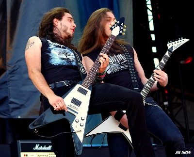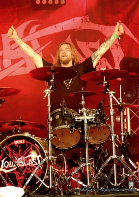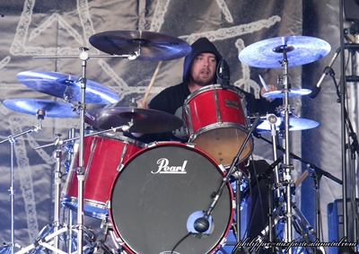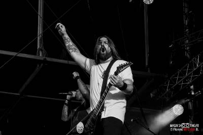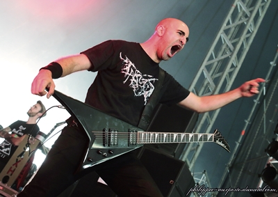 Death To All (The Altar - 22:55) (Deicide, Fimbultyr) (Deicide) Le show à ne pas manquer pour les amateurs de technicité. Je ne pouvais louper Death to All (que je préférais à Sabaton), le groupe qui refait vivre les hymnes de Chuck Schuldiner, leader disparu et regretté de Death. Je note Sean Reinert à la batterie avec son acolyte de toujours Paul Masvidal à la gratte. Les connaisseurs se souviennent qu’on doit à ces deux larrons la formation Cynic (groupe au zénith du death metal technique des années 90’s). Masvidal et Reinert ont surtout gagné leurs lauriers au titre de leur collaboration avec Chuck sur l’album Human en 1991. Au chant et guitare, Max Phelps (qui prête un coup demain à Cynic de temps à autre), et à la basse, le légendaire Steve DiGiorgio (qui était aussi sur Human). Je suis super déçu du son. Quel gâchis ce son de merde, ça crache à plusieurs moments. Pauvres musiciens. Au milieu du set, Sean et Paul laissent leur place à 2 autres virtuoses : Hanness Grossmann et Steffen Kummerer respectivement batteur et chanteur guitariste de Obscura. (Fimbultyr) Juste après Iron Maiden, c'est maintenant l'heure de Death to All. Les gaillards qu'on ne présente plus accompagné de Max Phelps sont ici en tournée hommage au très regretté Chuck. La Altar déborde tant l'affluence est importante. Le show est mené principalement par Steve DiGiorgio, qui tiendra le rôle de frontman. Max fait son boulot de manière exemplaire, en essayant de coller le plus possible au style de son glorieux prédécesseur, sans ajouter trop de touches personnelles qui n'auraient pu qu'énerver les puristes. Je ne sais pas s'il est nécessaire de préciser que chacun des musiciens sur scène démontre une fois de plus son statut de légende. DiGiorgio et sa fretless assurent des basses d'une profondeur démente, tant sur le plan du son que sur celui des morceaux. Paul Masdival est avec son (affreuse) guitare sans tête, et balance avec une fluidité hors du commun toutes ses parties. Reinert, derrière ses fûts, gère calmement son affaire. C'est une succession de classiques qui s'imposent comme des évidences, Flattening of Emotions, Suicide Machine, Crystal Mountain ou Symbolic pour ne citer qu'eux. Setlist Death To All : 01. Flattening of Emotions Slayer (Mainstage 2 - 23:00) (philippec) Après Kataklysm, je retourne vers les Mainstages, du moins j'essaye, une fois le show de la mémé de fer terminé. Cela se décante enfin et je peux me rapprocher de la mainstage 2 pour voir Slayer ! Hell Awaits raisonne dans la nuit clissonnaise, le public exulte, puis The Antichrist s'enchaîne, comme sur le live Decade Of Agression, cela devient de la folie furieuse ! Les Américains font vite savoir qu'ils ne sont pas là pour jouer les doublures, leur setlist est remplie de brûlots qui vont faire exploser l'ambiance. En plus, eux, contrairement à Iron Maiden, ont un vrai ingé son aux manettes, leur son sur War Ensemble est apocalyptique, Paul Bostaph nous sort aussi le grand jeu. Même s'il y aura toujours l'ombre de Lombardo, Paul est vraiment un grand batteur. Pareil pour Gary Holt qui a su rapidement s'intégrer au sein de Slayer en jouant une grande partie des solos. Kerry King aussi est en forme, on le trouvera presque jovial et content d'être sur la Mainstage 2 ! Le groupe enchaîne les hits, Tom Araya, impressionnant avec sa barbe blanche, est vocalement irréprochable. Comme à son habitude il est peu bavard entre les titres, mais quel magnétisme il a sur les classiques comme Hell Awaits, The Antichrist, War Ensemble, Seasons in the Abyss, Raining Blood, South of Heaven, Angel of Death... qui ont fait l'histoire du groupe ! Angel of Death fut bien entendu la séquence émotion du set, le backdrop derrière les musiciens change, pour un nouveau qui représente le logo Heineken/Hanneman. Slayer, qui nous quittera sur ce titre hommage à leur compère Jeff Hanneman, sera pour moi la vraie tête d'affiche de la soirée. Après cette grosse fessée, on peut comprendre pourquoi le grand Iron Maiden a voulu absolument changer son heure de passage ! Setlist Slayer: 01. Hell Awaits Sabaton (Mainstage 1 - 00:00) (Didier) Marrant ces gars de Sabaton, ils courent de partout, tous habillés avec leur pantalon camouflage. L'accent et le style fait penser à des Teutons mais ils sont bien suédois. Le chanteur n'en revient pas que tant de monde soit encore devant la Mainstage à 1h du matin. Par contre pas sympa l'orga du Hellfest de ne plus éclairer la scène avec les poursuites, on y voit plus rien sur scène. Apparemment, les poursuites sont pour les têtes d'affiche, les autres peuvent se brosser (dans le noir). Le chanteur à beaucoup d'humour, il explique qu'avec leurs tenues, ils resemblent aux ... Village People. Du coup la foule crie "Village People !, Village People !", il est mort de rire, d'autant que ça devient une blague récurente tout au long du set. Le son est très bon, et la foule participe aux "hé ho", et autres chants guerriers simplistes de Sabaton. Il nous explique que derrière sa veste aux pièces de metal, il cache des abdos de malade, ça gueule alors il ouvre sa veste, mais dessous il a encore une combi avec des abdos dessinés, la blague ! Vers la fin, il explique qu'il a écrit une chanson et que il doit jouer de la guitare. Son roadie en amène une et il attaque un Smoke On The Water super laborieux. Tout le monde se fout de sa gueule, quand il enchaine ensuite avec un riff de dingue de Metallica. Le bougre sait jouer en fait ! L'ambiance est légère en cette fin de première journée. Tant mieux je suis mort. Sabaton en fait des tonnes ! Setlist Sabaton : 01. Ghost Division Septicflesh (The Altar - 01:05) (Lurk) C'est sous l'Altar que se finit la soirée. Je ne tiens plus debout après cette longue journée mais je tiens absolument à voir Septicflesh et ce n'est pas un petit mal au pied qui m'arrêtera ! Une bénédiction du ciel me permet de m'
