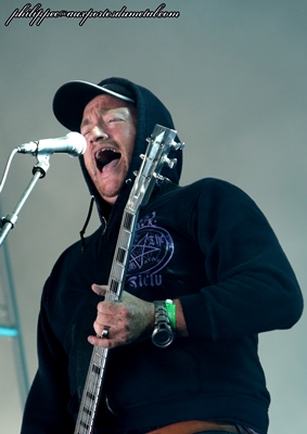 Crédits photos: Florent Mr Crash B. de Magik Shooting Setlist de M.O.D : 01. Aren't You Hungry? Therapy? (Mainstage 1 - 16:55) (Deicide) Les Irlandais du Nord prennent la Mainstage progressivement d’assaut. Moi, je suis fou de l’album Troublegum et mis à part deux-trois chansons, c’est tous les incontournables de cet album que jouera Therapy?, Knives, etc. Andy… n’a pas pris une ride, du moins son rock musclé n’en a pas pris. Je suis néanmoins surpris de la réaction du public. Autour de moi, je vois peu de personnes reconnaissant les chansons. Moi je reprends les refrains… après tout, du moment que je m’éclate... Je ne suis pas sûr que Therapy? ait plu au final.