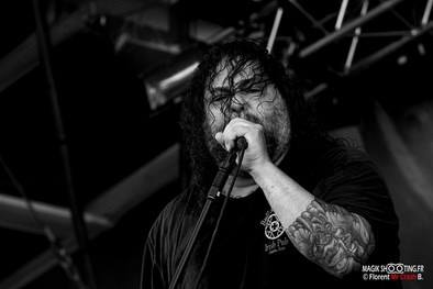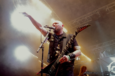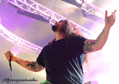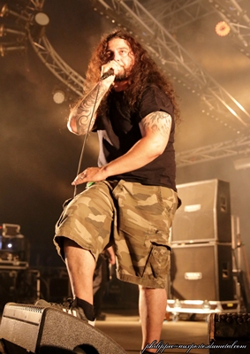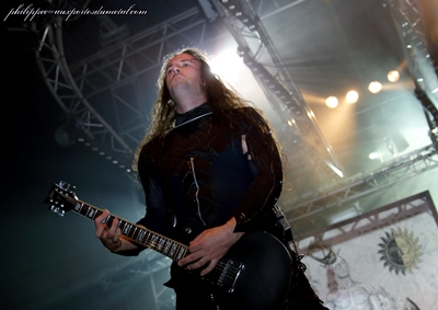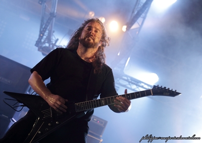 Crédits photos: Florent Mr Crash B. de Magik Shooting Setlist Sepultura : 01. The Vatican Après Kylesa je me presse pour aller vers la Mainstage 1 pour voir Iron Maiden mais impossible de me frayer un chemin sans me battre, donc je renonce et je vais vers The Altar où joue le groupe de Death canadien Kataklysm. Pourquoi ce choix ? Eh bien je les ai déjà vus en concert et j'ai apprécié leur prestation ! Le concert commence avec Elevate, un titre bien enlevé qui prouve que les québécois ne sont pas là pour faire de la figuration. Le suivant, The Ambassador Of Pain, est encore plus énervé ! Il n'est pas facile de passer au même moment que la tête d'affiche du soir, mais les musiciens de Kataklysm en sont bien consients, c'est pour ça que tout le long du set Maurizio, le chanteur, va remercier le public présent ! Au fil des titres joués, l'affluence sous The Altar grossit, Kataklysm fait plus que le job. Pendant que les musiciens font tourner leurs tignasses et que le public headbangue en rythme, l'ambiance monte, monte... Pour ce concert, Kataklysm a choisi de jouer une setlist ne contenant que des titres très violents et punchy comme The Resurrected, Like Animals, As I Slither, Prevail... Le groupe ne s'est pas trompé, le public est très réceptif à ce choix. Quand je sors de The Altar, comme la majorité du public, je suis heureux d'avoir passé ce moment avec les musiciens de Kataklysm qui ont su, par leur professionnalisme, tirer leur épingle du jeu. Et après avoir écouté quelques titres de Maiden (son pourri), je ne regrette pas mon choix ! Setlist Kataklysm: 01. Elevate Je n'attendais rien de particulier de Maiden, juste de passer un bon moment. Ce fut le cas. Nous avons opté pour une place à une vingtaine de mètres de la scène, plein centre. Et ce fut une première erreur due à cette barrière intermédiaire installée seulement le vendredi. Trop de passage (putain mais jamais vous arrêtez de circuler les mecs ! Et regardez un peu la scène !), émeute à la fin... bref, pas super la barrière, content qu'elle ait disparue le lendemain. Sur scène, je trouve que c'est minimaliste, le décor est gentillet, les backdrops changent à chaque morceau, mais ça fait un peu has been, un écran géant non ? Bruce se démène et parle au public en français pendant tout le concert. Il sait tout faire, ce mec. En plus, il se met tout le monde dans la poche en annonçant avec un sourire malicieux le score de France - Suisse à intervales réguliers. Sympa (le mec et le score !). Les morceaux de légende défilent mais je trouve le son brouillon et pas à la hauteur de la légende. On n'entend peu les différents solos de guitare et très peu la basse d'une de mes idoles, merde quand même ! En tout cas, d'où je suis, c'est pas top. Les musicos bougent un peu. Janick doit être adepte de gym, il passe son temps à jouer en faisant des étirements. Steve fidèle à son style, mitraille la foule de sa Fender. Bruce fait le show, montant régulièrement à l'étage supérieur de la scène, notamment pour The Trooper, avec son blazer rouge et son drapeau anglais. Ca en jette. On aura droit a une petit blague sous forme d'extrait de Metallica. Le rappel est dantesque. Je suis content de la soirée, mais franchement le son laisse à désirer, ça gâche un peu le plaisir. Setlist Iron Maiden : 01.Moonchild