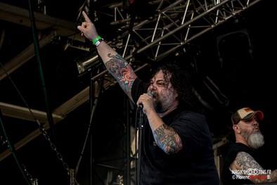 Setlist Mars Red Sky: 01. Arcadia Nightmare (Mainstage 1 - 11:05) (Lurk) J'enchaîne sur la Mainstage 1 avec Nightmare, groupe de heavy, dont j'avais eu les échos d'une très bonne réputation. Ça ne se dément pas sur scène avec une prestation de vieux de la vieille qui savent clairement y faire. Ce groupe français, qui existe depuis plus d'une trentaine d'années, est malgré les années toujours aussi enthousiaste sur scène. Son chanteur Jo Amore, comme à son habitude, communique pas mal entre les titres et il crée rapidement un lien avec le public qui, au fil des titres joués, prend plaisir à être devant la Mainstage 1. Il faut dire aussi que Jo a vraiment une belle présence sur scène et tient un chant très bien exécuté, rappelant dans son allure, sa gestuelle et sa voix le fameux Ronnie James Dio. Magnifique ! Crédits photos: JM.GREE Setlist Nightmare: 01.The Aftermath (intro) Doyle Airence (Mainstage 2 - 11:40) (Lurk) Je ne bouge pas beaucoup et reviens devant la mainstage 2 pour voir jouer Doyle Airence. Le public est un peu plus épars, je ne suis pas sûr que beaucoup de monde les connaisse. Le groupe arrive sur scène et nous sert son post metal avec une très bonne interprétation. Connaissant l'album, ils ont très bien réussi à retransmettre les émotions de celui-ci. Malheureusement, un show en pleine lumière sur une scène aussi grande, ça me paraît un peu décalé comparé à l'aspect très introspectif de leur musique. D'autant plus que le groupe demandera à une ou deux reprises de brandir le poing et de ponctuer tout cela à l'aide de "hey" eux aussi assez déplacés. Un show en demi-teinte, qui aurait mérité l'atmosphère plus intimiste de la Valley. Conan (The Valley - 11:40) (philippec) Après Mars Red Sky qui ont bien assuré une heure auparavant dans the Valley, me voila de retour pour y voir le groupe de Doom, Conan. Les Britanniques qui arrivent sur scène tout de noir vêtus avec casquettes et capuches sur la tête, montreront à peine leurs visages mais ils ne sont apparemment pas là pour un défilé de mode ! Ils sont là pour nous en mettre plein les oreilles ! Les basses du premier morceau Crown of Talons ainsi que les hurlements de Jon Davis (chant et guitare) transpercent The Valley. Le tempo et le niveau de graves imposés par Conan rythme les pulsations du public qui se retrouve au fil du set complètement hypnotisé par la musique du trio. Sans une parole entre les titres, Jon Davis, Phil Coumbe (basse) et Paul o'Neil (batterie) continuent d'entretenir le mystère, seul la musique compte ! Le trio enchaîna trois autres titres : Foehammer, Hawk as Weapon, Altar of Grief puis nous laissa. Le public écrasé par ce set pachydermique délivré par Conan a eu du mal à sortir de sa torpeur. Je pense que beaucoup de gens le feront en gardant une drôle de sensation. Pour moi, ce fut celle d'avoir vu un concert qui me marquera à jamais ! Setlist Conan: 01. Crown of Talons Crossfaith (Mainstage 1 - 12:15) (Lurk) Encore une fois je n'ai pas beaucoup de marche à faire, car cette fois-ci ce sont les cinglés de Japonais de Crossfaith que je vais voir sur le mainstage 1. Et là, si je m'attendais à quelque chose d'énorme, mes attentes ont été dépassées ! Un public plus que présent à répondu à l'appel, et le bordel n'a pas tardé à commencer sous les coups de boutoir de l'électro-metal du groupe. C'est le premier gros concert de la journée pour moi, et je m'aventure sans hésiter dans les pogos, emporté que je suis par la folie que provoquent en moi ces Japonais. Ils ne joueront qu'une petite demi-heure, mais une demi-heure de défouloir total. Le chanteur ira même jusqu'à se faire porter par la foule et continuer à chanter, un régal. Setlist Crossfaith: 01. We Are the Future Caspian (The Valley - 12:50) (philippec) The Valley suite... Me revoilà sous ma tente fétiche pour y découvrir Caspian, un groupe de post-rock originaire des États-Unis, qui va très vite envoûter The Valley en nous proposant une musique exclusivement instrumentale et très athmosphérique. Même si les musiciens qui composent Caspian, eux, avancent à visage découvert, comme Conan le groupe précédent, ils sont peu bavards entre les titres, préférant préviligier leur musique. Les Américains nous joueront cinq titres : The Raven, Malacoda, Sycamore tirés de leur album Tertia (2009), et Gone In Bloom and Bough, Halls of the Summer que l'on trouve sur Waking Season (2012). Le tour de force de Caspian c'est que même si elles ne sortent pas du même album, ces cinq compositions n'en deviennent plus qu'une et le concert, au fil des ambiances imposés par cette musique à la fois athmosphérique et puissante, se transforme en un vrai voyage. Sur le titre final, Sycamore, il se passe quelque chose d'unique sous the Valley, on sent une telle osmose entre Caspian et nous, le public, que l'on ne fait plus qu'un avec le groupe. La sincérité de cette musique a transporté tout l'auditoire vers d'autres cieux. Nous étions en lévitation et à la dernière note jouée par Caspian, il fut dur pour nous de retoucher le sol et de revenir à la réalité ! Je tiens là ma découverte de cette édition 2014. Caspian est un groupe qui mérite d'être connu ! Sa musique est un enchantement, le public revient de ce voyage plein de reconnaissance envers ces musiciens qui leur ont donné tant de plaisir et de sincérité ! Setlist Caspian : 01. The Raven Downfall Of Gaia (The Valley - 14:20) (Lurk) Après une pause repas méritée, direction la Valley pour voir Downfall Of Gaia. Je me retrouve tout devant la scène, mais aussi pile en face des murs de son. J'ai mangé pendant tout le concert des saccades remuant sévèrement ma pomme d'Adam et mes tripes, cela participant activement au malaise (volontairement) provoqué par la musique. Je me suis retrouvé immergé pendant quarante minutes dans un monde que je ne contrôlais plus, tantôt chaotique, tantôt