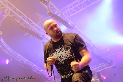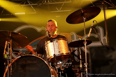 Setlist Status Quo : 01. Caroline Protest The Hero (The Warzone - 18:45) (Lurk) Tout de suite après Dagoba, je me rends devant la Warzone pour voir le seul groupe plus ou moins affilié au djent du fest. Là aussi j'étais empli d'attentes, leur album Volition étant une tuerie. Et c'est certainement l'un des concerts qui m'aura le plus impressionné sur ces trois jours ! Le niveau technique de tous les musiciens est à se décrocher la mâchoire, surtout le chanteur, qui m'a scotché par la maîtrise de sa voix. Bon sang on croirait entendre l'album ! Parfois il harangue la foule entre les morceaux, avec un humour acide et empli d'autodérision, en plus de nous en mettre plein la vue il nous fait bien rire, le con ! Le concert était parfait, avec un son au top, un public réceptif mais pas trop agité, certainement calmé par les bizarreries rythmiques proposées par le groupe. Un de mes meilleurs concerts, assurément. Setlist de Protest The Hero : 01. Clarity Gorguts (The Altar - 18:45) (Fimbultyr ) Gorguts, en France, c'est rare. Donc on en profite. Avec la sortie de Colored Sands, Gorguts revient après une pause de douze ans en terme de sortie d'album. Setlist Gorguts : 01. Le Toit du Monde Clutch (The Valley - 19:45) (philippec) L'année dernière, Clutch avait été forcé d’annuler sa participation au Hellfest à cause d'un décès dans la famille de Neil Fallon le chanteur. Donc le voilà tout logiquement reprogrammé pour cette édition 2014. The Valley est en ébullition, les fans du groupe sont nombreux, au point que le public déborde hors du chapiteau. Une petite intro et voilà les Ricains sur scène, Neil Fallon en grande forme est virevoltant, il va à droite et à gauche. Le set part sur les chapeaux de roues, avec l’enchaînement The Mob Goes Wild et Earth Rocker, deux brûlots qui mettent d'emblée le feu sous la tente. Pas beaucoup de paroles entre les morceaux mais les musiciens de Clutch communiqueront leur bonne humeur et leur plaisir d'être là à travers leur blues rock bien gras. Le groupe qui bénéficie d'un super son nous fait un excellent show, le public est en transe à chaque fois que Tim Sult à la guitare fait chauffer sa wah-wah ! Le batteur aussi n'est pas en reste avec son jeu très aéré et groovy, il donne un côté très dansant aux compos. La setlist jouée fait la part belle à Earth Rocker, dernier album en date du groupe : cinq titre joués dont D.C. Sound Attack! et The Wolf Man Kindly Requests... deux sacrés brûlots ! On y retrouve aussi Sidewinder, une nouvelle compo qui passe très bien en live mais le clou du concert est pour moi l'enchainement Electric Worry/One Eye Dollar ! "Bang Bang Vamonos Vamonos"... Au refrain d'Electric Worry, Neil Fallon et le public ne faisaient qu'un ! Grand moment que ce concert , je sors de The Valley avec la banane ! Clutch a su garder la même ambiance tout le long du set. On a assisté à une belle communion entre le groupe et nous, le public. J'espère les revoir bientôt. Setlist Clutch : 01. The Mob Goes Wild Quoi de mieux en revenant de la Warzone, que d'enchainer sur Hatebreed ? C'est donc ce que je me suis empressé de faire et me retrouve à nouveau vers les premiers rangs. J'avais bien accroché au dernier album, c'est dix fois mieux en live ! Le hardcore est clairement une musique qui se vit à travers ses tripes en concert, et les mosh-parts sont jouissives ! Le concert c'est donc avéré explosif, et on a même eu le droit à un moment Patrick Sébastien, tout le monde faisant tourner tee-shirts et autres casquettes. J'étais plié. Un autre concert d'excellente facture cet après midi, décidément le samedi fait fort ! Setlist Hatebreed : 01. To the Threshold Deep Purple (Mainstage 2 - 21:45) (Didier) Pas facile d'apprécier le pourpre profond à sa juste valeur, étant placé à droite de la MainStage 2 (prêt pour Aerosmith), alors qu'ils jouent sur MainStage 1. Pourtant les papis ont la pêche et se défoncent devant une véritable marée humaine devant les deux MainStage. La foule répond gentiment, c'est pas le moment de se casser quelque chose. Musicalement le plus "affaiblie" me semble clairement Ian Gillan (68 ans quand même !). Plus question de s'égosiller sur Child In Time, il fait de son mieux et certains morceaux sont clairement adaptés à ses capacités vocales actuelles. Même remarque pour les solos Blackmorien, joués aujourd'hui par Steve Morse de façon différente. Non pas que Steve Morse ne soit pas capable de les jouer, mais j'imagine qu'il préfère mettre sa touche personnelle plutôt que de singer Ritchie. Par exemple sur Smoke On The Water, hymne parmi les hymnes, il joue carrément un autre solo et se recale à un moment sur un passage caractéristique. Ca le fait. Par contre, côté basse, là c'est le top, Roger Glover s'éclate et laisse parler son talent. Sa basse ronfle et groove, un truc de dingue. Sur le dernier morceau, Black Night, il nous fait un petit solo bien cool, accompagné de Ian Paice, fidèle aux fûts. Aux claviers, c'est un autre monstre (Don Airey) qui a pris la suite de John Lord et qui perpétue la tradition. Ils nous jouent un morceau de leur dernier album, Uncommon Man, que probablement peu de monde connait, et bien sûr balancent quelques skuds légendaires qu'on a grand plaisir à entendre : Strange Kind Of Woman, Lazy sur lequel Ian Gillan sortira son harmonica, Space Truckin' ou encore Hush. Je suis aussi très content de reconnaitre l'intro de Perfect Strangers. Quel morceau, parfaitement interprété ce soir ! Deep Purple reste une valeur sûre, malgré les années. Avec un répertoire pareil, on comprend que les mecs n'aient pas envie d'arrêter. Par contre si quelqu'un pouvait dire à Ian Gillan que ses lunettes de soleil violettes ne sont plus de son âge, ce serait pas mal... Setlist de Deep Purple : 01. Après Vous Nile (The Altar - 22:55) (Fimbultyr ) Après etre passé à Paris le 17 Septembre 2013, voici nos améri