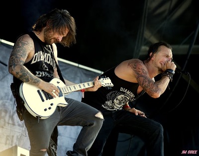 Setlist de Buckcherry : 01. Gluttony Walking Paper (Mainstage 1 - 15:10) (Didier) Walking Papers est une des révélations de 2013 pour moi. J'ai réussi à chopper une interview plus tard dans la journée, en aucun cas je ne vais rater ce moment. Il est encore tôt et c'est le meilleur moment du Hellfest, car on peut, si on le veut se placer très près de la scène. Je suis au pied de Duff McKagan, un de mes bassistes-hero. Ils attaquent par deux morceaux qui ne sont pas sur leur premier et unique album. C'est ambitieux mais ne pose aucun problème à la foule qui répond bien. La basse de Duff sonne super bien, le pianiste, semble possédé, il fait des sauts sur son banc. Au chant/guitare, Jeff Angell est impressionnant d'aisance, autant au chant qu'à la guitare. Il fait des pas de danse avec son pied de micro. Sur Red And White, encore un nouveau morceau, il pose sa guitare, le morceau n'en a pas, et décide de descendre prendre un bain de foule. Enorme. Ils terminent leur set, que j'aurais voulu plus long, par un superbe enchaînement, Capital T et Two Tickets and a Room, tous deux dans l'album, et tous deux géniaux. Je suis sous le charme...