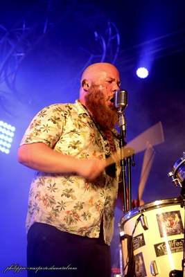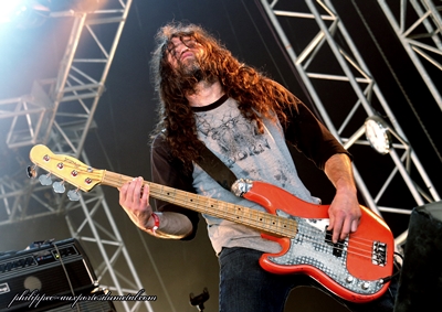 Darkness Dynamite (Mainstage 2 - 10:30) (Lurk) La journée commence avec Darkness Dynamite, petit groupe de metalcore qui m'avait relativement plu sur album. Malheureusement, ça ne l'a pas fait en live. La prestation sur scène du groupe m'a semblé assez faible, autant techniquement qu'au niveau du charisme du groupe. Ce n'était pas insupportable non plus mais il y a une bonne marge de progression. Setlist Darkness Dynamite : Benighted (The Altar - 12:15) (Fimbultyr) A midi quinze, la Altar commence à se remplir pour accueillir les Stéphanois de Benighted. L'heure matinale n'empêche pas le public de s'investir à fond dans le concert, et ce dès les premiers morceaux: x2y et Noise, issus de Carnivore Sublime. Selist Benighted : 01. X2Y Mos Generator (The Valley - 12:50) (Didier) Le moins que l'on puisse dire, c'est que sous la tente Valley on y trouve souvent des barbus. Chaque fois que l'occasion se présente, c'est là que je viens prendre un peu le frais. Mos Generator, ne déroge pas à la règle des groupes stoner qui défilent sous cette tente : puissants, vintage et grosses barbes donc. Ici, on a affaire à un power trio comme on les aime. Un bassiste gaucher adepte de la Fender Precision, un chanteur guitariste émérite et un cogneur. Simple, net, efficace. Le son est bon, la foule répond bien, ça sent les herbes-qui-font-rigoler. Le son se fait tantôt gros hardrock qui tâche, tantôt plus bluesy. Le tout ponctué de très bons solos de guitare. J'avais entendu beaucoup de bien de la formation, ce set le confirme.