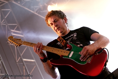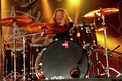 Setlist Extreme : 01. Decadence Dance Dagoba (Mainstage 2 - 17:50) (Lurk) Dagoba, voilà l'un des groupes que je ne voulais surtout pas rater ! Déjà vus en live, je savais qu'ils nous fourniraient un show digne de ce nom. Je m'étais auparavant avancé jusqu'au premier rang, meilleure place pour profiter de près sans trop se faire malmener (ho le petit joueur !). Si mes attentes étaient élevées, elles furent plus que comblées. Les Marseillais nous ont servi leur pilonnage intense avec l'art et la manière et un bon son, même en face des baffles. Le public était fou, et tout y est passé : pogos, circle-pits, walls of death... Dont l'un restera dans les annales, du jamais vu ! Si vous avez raté ça, regardez cette vidéo. Crédits Photos JM.GREE Setlist Dagoba : 01. I, Reptile Status Quo (Mainstage 1 - 18:45) (Didier) Status Quo au Hellfest ? Ca peut surprendre et pourtant ! Ces mecs sont énormes et la foule tout aussi énorme massée devant la MainStage 1 prouve que le choix était judicieux. Rick Parfitt et Francis Rossi répondent une nouvelle fois présents et viennent balancer leur boogie rock irrésistible à plusieurs générations de (hard) rockeurs. Rappellons-nous en voyant le célèbre duo de télécaster élimées que ces deux là ont 65 ans. Ils nous enterreront tous, j'vous l'dis ma bonne dame ! Ils évoluent dans le line-up "récent" et non pas avec la formation d'origine, comme j'avais cru le comprendre. Dommage mais on s'en contentera tout à fait. Comment ne pas bouger sur Caroline, ou Paper Plane, Down, Down, c'est juste pas possible. Ils ont tellement de tubes qu'ils nous font un medley de quelques morceaux. Quand ils entament l'intro de In The Army Now, ma voisine de 17 ou 18 ans demande à son père : "c'est eux qui chantent ça ?". Eh ouais, c'est eux ! Le tube est aujourd'hui universel, pourtant à l'opposé du style Status Quo, va comprendre ! Mais bon, on va pas refaire l'histoire. Pour Whatever You Want, je vois encore ma voisine qui s'apprête à poser une question mais son père est en transe, elle se résigne, elle a compris. Ils terminent par un Rockin' All Over The World, tout aussi universel. Ils reviennent pour un rappel qui se conclut par une reprise de Chuck Berry. Hommage !