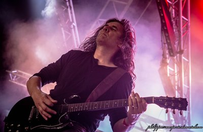 Setlist de Walking Papers : 01. Climber Witch Mountain (The Valley - 16:00) (philippec) Chaque année, je repars de Clisson avec quelques découvertes et souvent elles sortent de The Valley. Ce sera le cas pour Witch Mountain, un groupe de Doom Metal originaire de l'Oregon (Etat-Unis), formé en 1997 par le guitariste Rob Wrong et le batteur Nate Carson, et auteur de plusieurs albums. Ils seront rejoints en 2009 par une excellente chanteuse nommée Uta Plotkin, puis dernièrement par le bassiste Charles Thomas. Le quatuor entre sur scène avec The Ballad of Lanky Rae, un titre très lourd qui commence par une intro guitare solo de la part de Rob Wrong, Uta y est d'entrée étincelante, elle a une voix à la fois forte et envoûtante. En grande prêtresse, elle se met rapidement le public dans la poche, elle n'est pas que charmeuse, elle peut être aussi tueuse comme sur les titres Veil of the Forgotten ou Shelter. A côté de ses compères, elle paraît être une gamine, mais vocalement elle a vraiment de la bouteille ! Le titre à écouter d'urgence est Never Know, un grand moment de ce concert. Sur certain passage, elle fait penser à la grande Janis, le public est totalement hypnotisé par la sorcière de Portland, à tel point que l'on ne voit quelle, ses compères, même s'ils sont très bons, sont comme invisibles, éclipsés par la belle Uta ! J'ai passé un bon moment avec Witch Moutain. Le groupe sort de scène sous les ovations du public. Après Caspian, voilà ma deuxième découverte du weekend ! Setlist Witch Mountain : 01. Lanky Rae We Came As Romans (Mainstage 2 - 16:00) (Lurk) Pour l'heure du goûter, l'organisation nous a programmé We Came As Romans. J'avais chroniqué l'album et connaissais donc la majorité des morceaux du set, puisque celui-ci était à l'honneur. D'un point de vue technique, les petits jeunes assurent bien comme il faut et ont une patate communicative. Malheureusement, ce chant clair possède un côté très exaspérant, il est presque aussi lisse que sur l'album, ce qui tient de l'exploit car il paraît tellement artificiel sur celui-ci ! Mais surtout il n'a pour seul but que d'apporter des "hoho" dans le public. Le comble de l'exaspérant. Objectivement un très bon live, avec un public réactif aux premiers rangs, un excellent son, mais quelle musique crispante ! Setlist de We Came As Romans : 01. Tracing Back Roots Extreme (Mainstage 1 - 16:50) (Didier) C'est un des concerts que j'attendais le plus. Je n'avais encore jamais vu le groupe en live. Grâce au Hellfest je peux voir les deux plus gros groupes de Boston (Extreme et Aerosmith) le même jour : unique. En attendant le début, placé devant la Mainstage 1, je discute avec un fan absolu. Il a vu Aerosmith à Paris en 1990, ils avaient en première partie...Extreme. Bis repetita aujourd'hui. Respect ! On peut contempler le matos de Nuno, son mur d’amplis Randall est impressionnant. On nous a promis un hommage à l’album Pronograffitti et c’est tant mieux, on est impatient d’entendre ça. Ça part fort puisque Nuno est dans une forme impressionnante et le son de sa gratte est juste monstrueux. Sa réputation n’est plus à faire, il assure en solo, il assure en rythmique, et il assure aussi au chant, puisqu’il épaule Gary Cherone, qui lui par contre, semble avoir plus de difficultés avec les chants aigus. Ça reste de bonne facture et nous passons un excellent moment ponctué de solos monstrueux de maitre Nuno qui a sorti son arsenal de guitares, toutes aussi chouettes les unes que les autres. Mention spéciale à la Washburn N4 couleur bois. Il jouera aussi avec une grosse guitare acoustique douze cordes assez originale. Je réalise quelques clichés depuis la foule, quand le moment arrive où on installe deux tabourets sur scène, et Gary et Nuno attaque l’incontournable More Than Words. Je me fais sérieusement bousculer par un groupe de gamines hystériques qui veulent voir ça de plus près. Elles n’étaient pourtant pas nées à l’époque des faits. Nuno a la cote, l’effet Rihanna sûrement :-). C’est dommage qu’au même moment sur la MainStage 2, Dagoba est en pleine balance et joue carrément un morceau super fort. Bordel, un peu de respect ! Le chant de Gary est excellent sur ce petit moment de douceur, et le final de Nuno sur son acoustique est juste énorme. Pour le rappel, Pat Badger, le bassiste, revient avec une GoPro montée sur un casque. Ça lui donne un peu un air de "Chérie j’ai rétrécie les gosses". Par contre étrangement tout s’est arrêté sur les écrans du Hellfest, dommage, ils auraient pu renvoyer la vidéo du casque. On peut quand même voir et entendre le résultat là. Ils terminent par un Get The Funk Out endiablé. Décidément un groupe à part, Extreme, même si je reconnais que la prestation du jour n’a pas été… extrême.