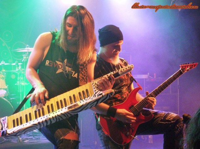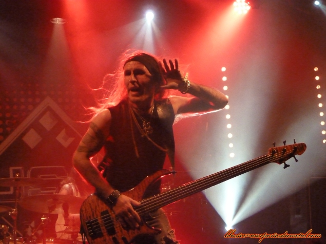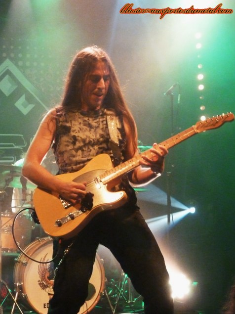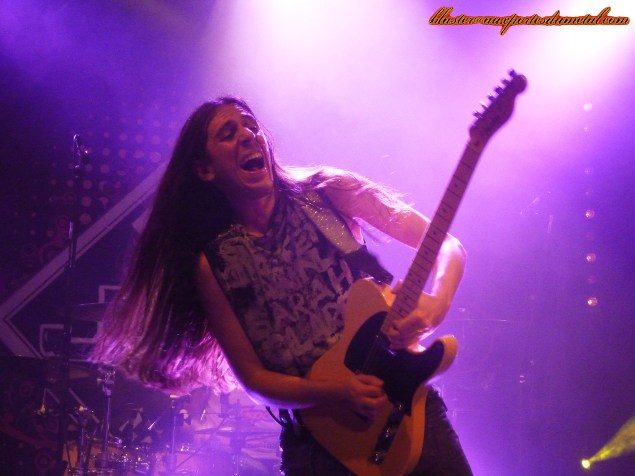 Après cet apéritif rafraichissant, il me tarde de voir Jeff Scott Soto à l'oeuvre, mais il me faudra patienter encore un peu car un deuxième groupe nous est proposé : celui de Jorge Salan. Ce nom dira forcément quelque chose aux fans de JSS puisqu'il s'agit bien du guitariste espagnol qui accompagne Jeff depuis la tournée consacrée à l'album Beautiful Mess. Le groupe se présente sous la forme d'un trio. Le talent de Jorge à la guitare n'est plus à démontrer, mais ce soir, le public eut également l'occasion de l'entendre chanter. S'il n'est pas un grand vocaliste, l'Espagnol s'en sort de manière tout à fait honorable. Dommage que le son ne soit pas tout à fait à la hauteur, le micro de Mr. Salan semble réglé un peu trop fort et le chant, provoquant des vibrations assez désagréables par moment, me prend régulièrement la tête. Cependant, les compos sont assez sympas, souvent chantées en espagnol, parfois en anglais, toujours mélodiques et parsemées de solos impressionnants. Les deux compères qui accompagnent le guitariste ne sont pas en reste et livrent une prestation impeccable. Les chansons jouées ne sont pas connus du public mais passent bien car elles sont très accessibles. Au rayon des petites surprises bien vues de la part du groupe, on notera la présence de deux reprises. Tout d'abord, Lay Your Hands On Me, hymne imparable de Bon Jovi, joué en mileu de set, puis Over The Hills and Far Away de Gary Moore proposée vers la fin du concert. Le public du Forum eut l'occasion d'admirer les prouesses guitaristiques de Jorge sur ces titres, comme sur le reste des morceaux proposés. Voilà un guitariste pas forcément exubérant en termes de jeu de scène (il fait plus dans la simplicité, la sobriété) mais dont la maîtrise de son instrument n'aura échappé à personne. Un vrai virtuose ! Setlist Jorge Salan : 01. Depredador