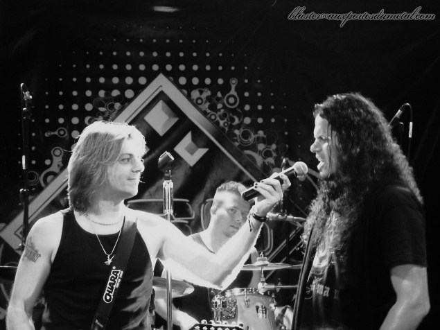 Il est maintenant temps de passer à la tête d'affiche de cette soirée jusque-là très réussie. Ceux qui ont déjà eu la chance d'assister un show de Jeff Scott Soto le savent bien : la déception semble impossible. Pas de quoi être inquiet quand les musiciens débarquent sur la scène du Forum, on va forcément passer un excellent moment. Car la force de Jeff et ses complices ne réside pas uniquement dans leur répertoire musical. L'art de la scène, du spectacle, est quelque chose qu'ils maîtrisent à la perfection. Et cette soirée fut, une fois encore, l'occasion de le vérifier. Les hostilités démarrent avec un titre hard assez heavy et technique, le puissant Take U Down, extrait du très bon Damage Control sorti l'année dernière. Au fur et à mesure que les compos s'enchaînent, l'aisance des musiciens et la grande complicité qui règne entre eux sont plus qu'appréciables. Jeff est un frontman hors-pair, ce qui n'est pas surprenant, mais il veille à mettre ses musiciens en lumière et ceux-ci ne sont donc pas cantonnés au seul rôle ingrat de faire-valoir. Ainsi on les voit très régulièrement bouger, échanger leur place, Jeff Scott Soto ira même à plusieurs reprises sur le côté de la scène derrière les claviers pendant que ses excellents acolytes occuperont le devant de la scène. Ce qui tombe bien, car ces messieurs sont tout de même de sacrées pointures. Le guitariste / claviériste BJ est également très bon chanteur (il occupe d'ailleurs ce poste au sein du groupe brésilien Tempestt). La première partie du set voit surtout des titres de Damage Control et d'albums plus anciens de Jeff Scott Soto s'alterner (on notera tout de même la présence de One Love, une très bonne chanson du groupe W.E.T. dont Jeff fait partie). Le son est très bon, Jeff est en voix, l'atmosphère détendue, le public ravi... Tout va bien. Un petit intermède instrumental nous est offert en cours de route avec Risk, une compo de Jorge Salan, et quand Jeff Scott Soto réapparaît, il porte un t-shirt Talisman. Car oui, il est l'heure de se plonger dans quelques compos de cet excellent groupe inactif depuis la mort du bassiste (et ami de Jeff) Marcel Jacob. Un long medley comprenant des morceaux des deux premiers albums du groupe ainsi que les deux reprises Frozen (Madonna) et Crazy (Seal) nous est servi et c'est un régal. Juste après, le chanteur et ses compères se lancent dans version longue de I'll Be Waiting entrecoupée de jeux avec le public (un fan sera invité sur scène pour chanter le refrain) ou autres interventions fun (le bassiste se fendra d'une excellente version de Billie Jean de Michael Jackson à la basse avec chorégraphie à l'appui). Excellent ! Disons que ce serait parfait avec un public un peu plus participatif. Attention, l'assistance est contente, l'atmosphère est chaleureuse, mais il est vrai que ça manque parfois un peu de réactivité, notamment quand il s'agit de reprendre les refrains en choeur... Jeff ne manquera d'ailleurs pas de charrier un peu ses fans en passant. La soirée se terminera avec une très bonne reprise du Shot in the Dark d'Ozzy Osbourne et deux chansons extraites de la BO du film Rock Star : Livin' The Life ultra-énergique, pendant laquelle BJ et Jeff se lanceront dans un concours de chant, et Stand Up qui verra le chanteur de Danger Angel venir prêter main forte à Jeff. Verdict : quels adjectifs viennent à l'esprit pour décrire un concert de JSS ? Fun, généreux, puissant, surprenant, classe... Souhaitons qu'il ne nous faille pas attendre huit autres années pour savourer à nouveau un moment pareil !