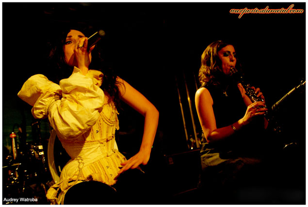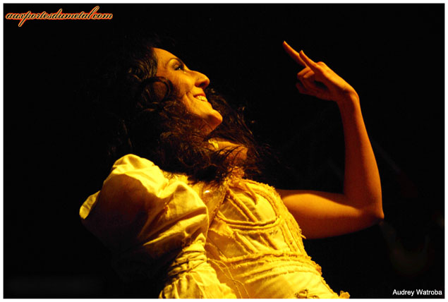 (qui n'est autre que la chanteuse du groupe). Pour une fois elle ne porte pas une de ses sublimes robes mais un simple pantalon avec un corset fait sur mesure, tout droit sorti de chez la corsetière (L'Atelier Sylphe Corsets). La tenue a des airs de piraterie accordée à merveille avec un maquillage sublime, de même pour la coiffure (elle aime se faire chouchouter avant les concerts par ses maquilleuses/coiffeuses).