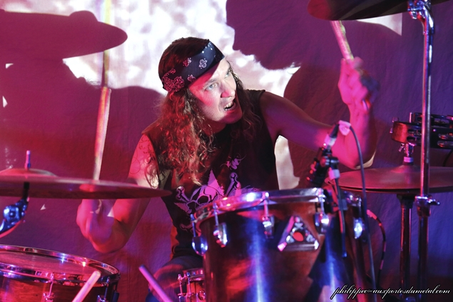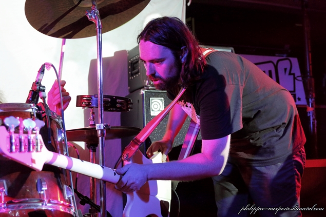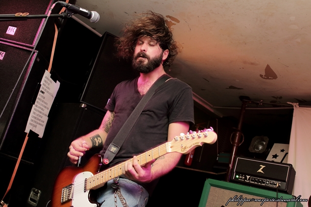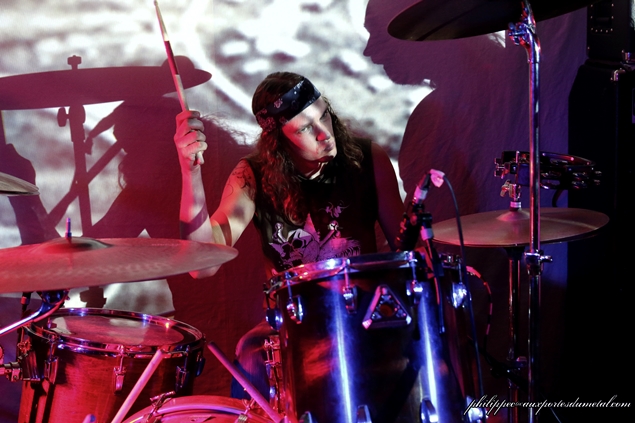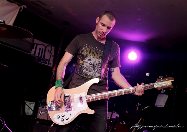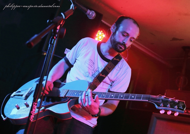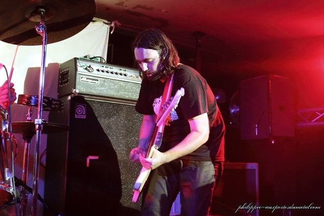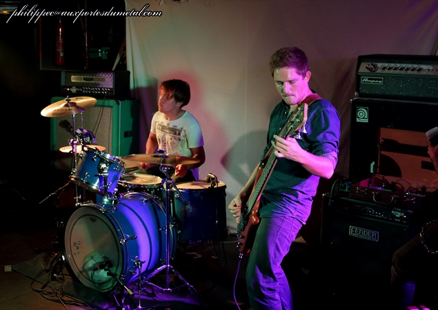 Nous sommes une petite cinquantaine pour assister à cette soirée organisée par l'association Claught By The Fuzz dans la célèbre salle associative niçoise Le Volume. Ce soir est sous les signes du Doom/Stoner et du trois. Trois groupes, trois trios en tête d'affiche actuellement en tournée : ce sont les Bordelais de Mars Red Sky, et avant eux deux groupes de la région PACA, Arisen originaire de Cagnes-Sur-Mer et Among Dead Dog de Toulon. Arisen se présente le premier sur scène devant une vingtaine de leurs amis et quelques curieux venus pour les prochains groupes. Leur musique est dans le thèmes de la soirée lourde et grasse, leur batteur qui sort du lot mène le tempo de belle façon, ce malgré quelques pains mais pas de quoi ouvrir une boulangerie, ses potes arrivant à le suivre tant bien que mal. Au fil du set, les Cagnois, qui joueront cinq compos, prennent leurs marques. Le public (en majorité des amis du groupe) est réactif, les têtes bougent ; et, même si au départ leur musique ne s'y prête pas, on a droit à des prémices de pogo sur Killing Charm (pour moi leur meilleur morceau) joué avec Untitled qui clôt le set et qui, comme son nom l'indique, n'a pas encore de titre. Ces petits jeunes s'en sont bien sortis, leur prestation était plus qu'honnête, mais il leur faut encore bosser pour que leur groupe Arisen ait un bel avenir. Et c'est en enchaînant les concerts qu'ils y arriveront. Setlist Arisen: 01. Rise Le temps de boire un pot pour les uns et de s'en griller une pour les autres, comme d'habitude nous avons eu droit au turn over de potes pendant la mise en place du prochain groupe. Une quinzaine de minutes s'écoula... Tout le monde est en place, public et musiciens : Among Dead Dog, toujours un trio, envoie du plomb d'entrée avec un Drunk All Day au tempo doomesque ; ce brûlot chauffe assez vite la salle, la voix de CM Sludge (chant/guitare) est très grasse avec des relents très... Sludge, mais vous l'avez sûrement deviné ! La rythmique est excellente, Wild Bear (le pseudo du batteur) et Hellcat (celui du bassiste) ne sont pas usurpés : ils envoyent du gras, les lascars ! Le public aime, les têtes s'agitent, il y aura même quelques pogos sur les titres les plus violents. A l'inverse d'Arisen, le trio Toulonnais est plus expérimenté, les huit compos qu'ils ont jouées sont toutes bien passées : le public a aimé bouger au son d'Among Dead Dog, auteur d'un excellent set. Groupe à suivre... Setlist Among Dead Dog: 01. Drunk All Day Le temps de boire un pot pour les uns et de s'en griller une pour les autres, comme d'habitude nous avons eu droit au turn over de potes pendant la mise en place du prochain groupe... Tiens, j'ai déjà lu ça quelque part. Enfin, Mars Red Sky arrive sur scène : le voyage commence avec l'instrumental Falls extrait de leur premier album, puis enchaîne avec Be My Guide tiré de leur EP sorti en 2013 ; presque pas de paroles entre les morceaux, il faut dire aussi qu'il y en a peu pendant, le trio préférant faire parler les instruments, Le son de la basse de Jimmy Kinast est bien rond, et couplé à la batterie de Matgaz cela donne une rythmique pachydermique. Le public est vite envoûté par leur musique qui a des côtés planants et atmosphériques. La voix plaintive de Julien Pras se marie bien à l'ensemble, et c'est aussi un très bon guitariste qui fait parler la wah wah comme personne. Le groupe enchaîne avec quatre titres de leur dernier album Stranded in Arcadia joués à la suite : Hovering Satellites, Join The Race, Circles et l'nstrumental Arcadia, qui sont accompagnés d'images projetées sur un grand drap blanc tendu derrrière Matgaz ; la salle étant petite cela donne une vraie ambiance intimiste. J'avoue qu'il m'est difficile de parler de ce concert, les émotions ressenties sont si fortes qu'elles en deviennent intimes, on a l'impression de vivre ce voyage seul avec le groupe, Marble Sky en est un bel exemple ! A la bourre car bloqué à l'entrée, j'étais arrivé sur ce titre à la moitié de leur set lors de leur passage à Clisson en juin... Et ce soir, grâce à Claught By The Fuzz que je remercie, j'ai fait un merveilleux voyage dans l'univers de Mars Red Sky. Après Strong Reflection et Way To Rome, le groupe annonce le dernier titre (la fin du voyage), The Light Beyond avec près de huit minutes de bonheur. C'est fini, on ressort heureux de ce voyage avec Mars Red Sky ; franchement, si ces mecs passent près de chez vous, ne les manquez pas ! Même si ce sont des inconnus pour vous, il faut tenter l'expérience ! Après le set Jimmy, Julien et Matgaz restent pour parler avec le public et signer des autographes ! Vraiment cool, ces mecs ! Setlist Mars Red Sky: 01. Falls Venez donc discuter de ce concert, sur notre forum ! |