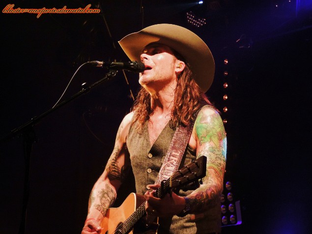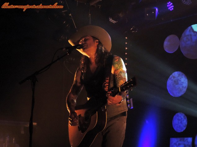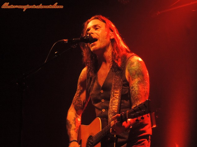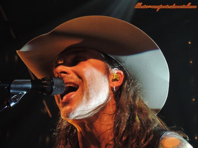 Mike Tramp, le rockeur (ou plutôt ex-rockeur) danois principalement connu comme la voix de White Lion était de passage en France, au Forum de Vauréal le samedi 20 septembre dernier. Pour mieux coller à son orientation musicale la plus récente, le show est acoustique et le monsieur est seul avec sa guitare et quelques samples. Qu'elles sont loins, les années 80 avec coiffure improbable, tenues colorées, grandes salles remplies de fans de hard FM... Là, c'est petite salle, concert assis, ambiance tamisée avec quelques tables rondes (sur lesquelles brillent de petites bougies) disposées dans ce qui d'habitude sert de fosse. L'occasion de voir un artiste comme Mike Tramp se produire dans un tel cadre est assez inhabituelle et les Portes du Metal se devaient de ne pas louper ça. En guise d'apéritif, c'est une jeune femme nommée Emji qui se présenta sur la scène du Forum. La demoiselle n'est pas franchement connue de l'assistance qui s'est déplacée pour Tramp et propose une musique qui n'a rien à voir avec le passé du Danois mais qui est plus raccord avec son orientation du moment. Nous ne sommes donc pas du tout, vous l'aurez compris, en territoire hard rock mais nous voyageons plutôt sur des terres pop, folk et plus si affinités. Et pour peu que l'on soit un peu ouvert d'esprit, la virée est loin d'être désagréable. Le programme est simple : une guitare, une voix. Oui, mais quelle voix ! On aime ou on n'aime pas le style ou les chansons présentées par Emji mais il sera difficile de nier qu'elle possède un timbre intéressant et une technique indéniable. La voix est belle, puissante et la chanteuse s'amuse à varier les registres et montrer son aisance dans des montées acrobatiques pas nécessairement à la portée de tous. Les premières compos sont chantées en anglais et sont très plaisantes, Emji nous avertit avec humour qu'elle a également des chansons en français. L'une d'entre elles sera d'ailleurs dédiée à un anonyme (qui, n'osant probablement donner son vrai nom, prétendra s'appeler Roger lorsque la jeune femme l'interroge) ; cette compo est censée décomplexer les hommes... elle s'appelle Tes poignées d'amour. Pas du tout mon style de musique, mais c'est fun et sympa. Les deux reprises (Call Me de Blondie et Toxic de Britney Spears) proposées par la chanteuse sont intéressantes et me font redire que cette jeune femme sait vraiment bien utiliser sa voix. Bref, voilà une première partie de soirée inattendue et agréable.