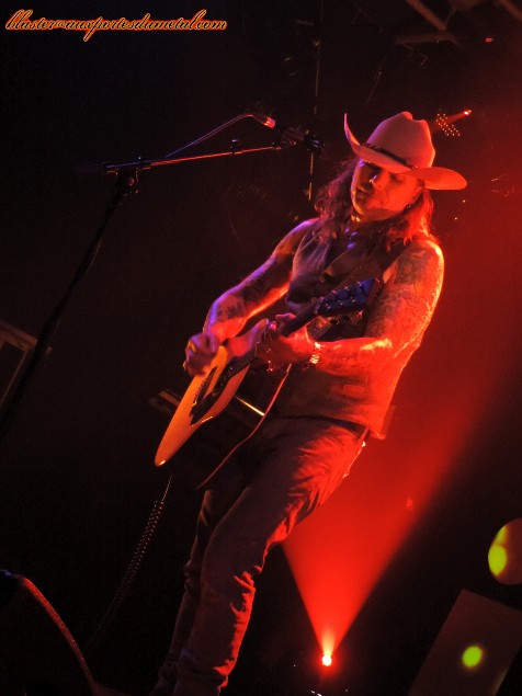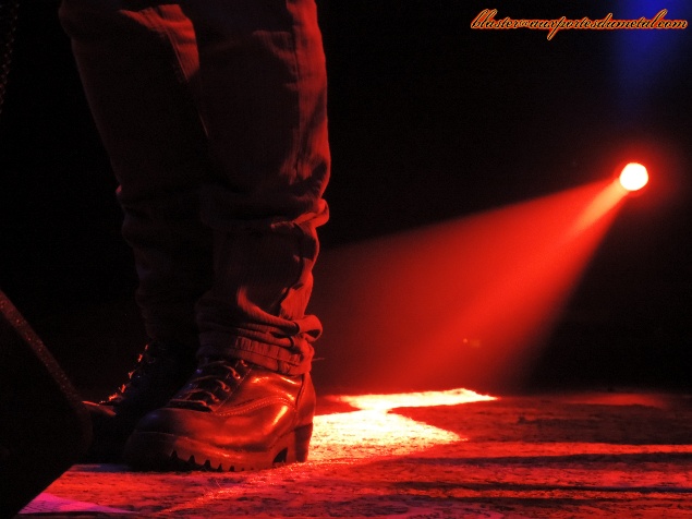 Une fois cette petite mise en bouche passée, on est prêt pour Mike Tramp venu nous présenter son tout nouvel album Museum. Mike débarque tout seul avec sa guitare et son chapeau (rassurez-vous, il porte des habits aussi), nous salue et commence le concert avec une vieille compo du lion blanc, Little Fighter. Début très sympa qui permet à quelques fans dispersés dans l'assistance de chantonner discrètement sur le refrain. Mais comme pour nous dire qu'il n'est pas que l'ex-chanteur de White Lion, Mr. Tramp enchaîne immédiatement avec une chanson de son avant-dernier disque (Cobblestone Street) intitulée Revolution. Bon choix, c'est une des compos les plus réussies de ce disque, du moins c'est mon avis. L'atmosphère dans la salle est bonne et, vu le dispositif mis en place (tables, chaises, bougies...), forcément calme... mais respectueuse et enthousiaste. A chaque début ou fin de chanson, le public applaudit très chaleureusement. On notera quand même un petit zeste de ferveur supplémentaire quand le Danois entame une chanson du répertoire du fameux groupe qui l'a fait connaître dans les années 80. C'est comme ça. Tell Me (tirée de Pride, l'album de tous les hits), en troisième position dans la setlist, permettra ainsi à quelques vieux fans d'accompagner (toujours très discrètement) le chanteur sur son refrain imparable. Mike Tramp s'adresse à nous très régulièrement, nous raconte des anecdotes, revient sur certains moments de sa vie et de sa carrière... il nous rappellera également plusieurs fois à quel point nous le rendons fier et heureux d'être là ce soir, parmi nous. Dans ces conditions, comme ne pas se sentir privilégié ? Comme annoncé, Mr. Tramp revisite donc sa carrière et ne fait pas que nous jouer des vieux classiques (même si la setlist en compte tout de même une bonne dose) destinés aux nostalgiques. Il nous présente son nouvel album Museum à travers trois extraits (seulement) disséminés à différents moments du show. Il y aura eu d'abord Trust In Yourself, puis And You Were Gone et enfin Mother. Assez tôt dans le concert, j'ai personnellement beaucoup apprécié le moment consacré à Freak Of Nature (groupe que j'ai toujours préféré à White Lion). Trois chansons des années "Freak" furent enchaînées : la ballade Need (de l'album Gathering Of Freaks) ainsi que Rescue Me et Turn The Other Way du premier album éponyme. Je ne vais vous pas faire la setlist chanson par chanson, cela n'aurait aucun intérêt (si vous voulez savoir tout ce qui a été joué, rendez-vous plus bas, en fin d'article). En revanche, il me semble plus intéressant de vous dire que la voix du ténébreux (car nettement moins blond qu'à une époque) Danois a toujours ce petit grain qui la rend immédiatement reconnaissable et que le monsieur chante bien (avec une intensité et une sincérité qui font plaisir à entendre) tout au long de la soirée. Entre toutes ses compos extraites aussi bien des années White Lion, Freak Of Nature ou solo (en passant par des albums comme Capricorn ou Recovering The Wasted Years), Mike nous gratifie de confidences, anecdotes et quelques notes d'humour. Le monsieur est très naturel et accessible... Simple et, du coup, éminemment sympathique. Quand la soirée se termine, sur un Farewell To You de circonstance (et après deux rappels qui inclurent notamment une petite reprise de Thin Lizzy, Southbound), deux heures quarante se sont écoulées... Et nous avons le sentiment d'avoir partagé un beau moment avec Mr. Tramp. A la fin du show, il descend de scène et vend lui-même son dernier album, serre des mains, signe des livrets et se prête avec plaisir au jeu des photos avec les fans. Vous ne serez donc pas surpris de me voir conclure en vous disant que ce fut une bien belle soirée. Setlist de Mike Tramp : 01. Little Fighter ATTENTION BONUS : Pour m'excuser des photos peu variées prises ce soir-là (vous reconnaîtrez que ce n'est quand même pas très facile, après tout, c'est juste un gars et sa guitare derrière un micro), je vous offre pour finir (roulement de tambour)... les pieds de Mike Tramp ! De rien. Enfin, je tiens à remercier l'équipe du Forum de Vauréal, toujours aussi accueillante et sympa !