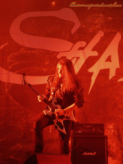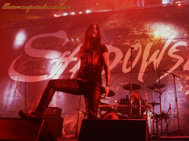 . Shadowside (Blaster). La troisième et hélas dernière journée de ce festival démarre (pour ma part) avec les Brésiliens de Shadowside. Le groupe est actuellement en tournée, en première partie de Helloween et Gamma Ray, et vu que ces deux derniers sont là, il n'y avait aucune raison que Shadowside ne participe pas à la fête. Je ne connaissais pas et je dois dire que j'ai trouvé ça très sympa. Shadowside propose un power metal bien direct avec de gros riffs thrashisants, des tempos bien enlevés et une chanteuse puissante, pas lyrique pour deux sous... mais plutôt du genre en colère. Bonne énergie, présence incontestable, les morceaux proposés s'écoutent bien... une reprise de Ace of Spades (Motörhead, pour les incultes) fait son petit effet. Le son est gros mais pas très clair avec un chant un peu en retrait. Au terme du concert, je ne suis pas devenu un inconditionnel de Shadowside, mais leur performance énergique m'a convaincu. Je me repencherai sur leur cas à l'avenir, c'est certain. Setlist Shadowside : 01. I'm Your Mind
