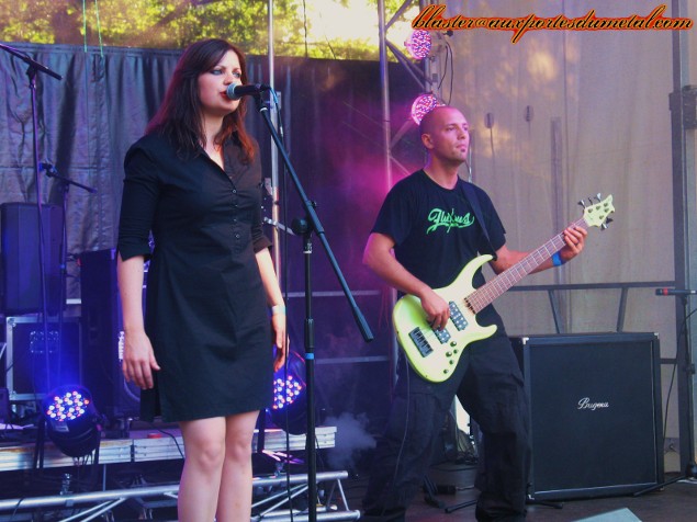 * Scène « Découverte » : Fluxious (Fifi). Fluxious, Fluxious, ce nom me dit quelque chose... Une formation pratiquant un Jazz Metal teinté de Pop et de Rock accrocheur et parfaitement interprété, une chanteuse avec un pêche d'enfer (et qui tient la scène à la perfection), ça me dit quelque chose... bon sang, mais c'est bien sûr... je possède leur album (Why So Serious, 2011) ! Franchement, je l'avais bien apprécié... tout comme ce concert qui a tendance à mettre de bonne humeur !