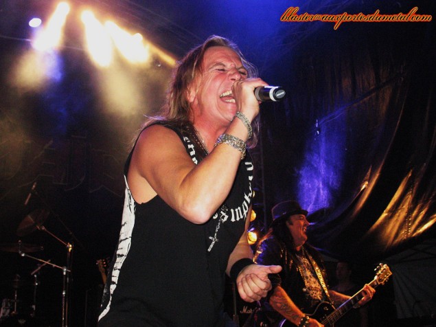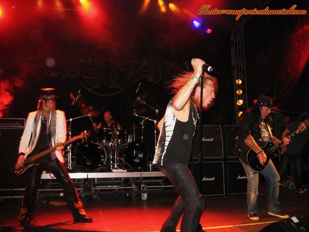 Le groupe attaque avec les deux premiers titres de leur dernier album en date : Pandemonium et I.N.V.U. Bon son, très bon light show, présence scénique incontestable… tout y est. Ronnie Atkins semble bien en voix. En fait, il livre une prestation conforme à celle du live It Comes Alive sorti il y a quelques mois de cela. Tout le groupe est là, sauf le claviériste Morten Sandager retenu en Suisse pour des problèmes de santé. Les points forts de Pretty Maids : une setlist équilibrée où se succèdent les classiques, à quelques exceptions ou manques près. Un frontman performant qui sollicite régulièrement le public, une guitare énorme (les riffs et soli de Ken Hammer sont un régal)… mais Pretty Maids, c’est aussi un batteur. Oui, Allan Tschicaja est un sacré personnage. Quelle énergie ! Ce monsieur est toujours « à fond » ! Qu’il joue un morceau rapide comme Destination Paradise, un titre plus mid-tempo comme Wake Up To The Real World ou une ballade comme Walk Away, ça ne change rien, il y va avec le même entrain, la même pêche, à coups de baguettes, de bras levés, et avec une banane omniprésente. Il s’éclate et son plaisir est communicatif. Si les compos hard rock entraînantes parsèment la setlist, les chansons plus heavy et percutantes son loin d’être absentes. Ainsi, on se régale en se prenant du Back To Back, du Rock The House, une dose de Yellow Rain ou encore une Future World (jouée en rappel) explosive. Il n’y a pas à dire, les vétérans assurent ! Petit moment de solitude tout de même avec Please Don’t Leave Me : quand Ronnie demanda au public de chanter le refrain, ce dernier se fit très discret. Bizarre… Paroles oubliées ? Fatigue ? Prise de conscience soudaine quant à la pertinence discutable de la présence d’une telle chanson dans la setlist ? En tout cas, ce petit incident mis à part, le concert fut de grande qualité et la réaction du public très enthousiaste et chaleureuse. D'ailleurs, le concert se termina avec le classique Red Hot & Heavy, rallongé pour l'occasion (avec un petit passage de Smoke On The Water) et toujours aussi imparable. Setlist Pretty Maids :