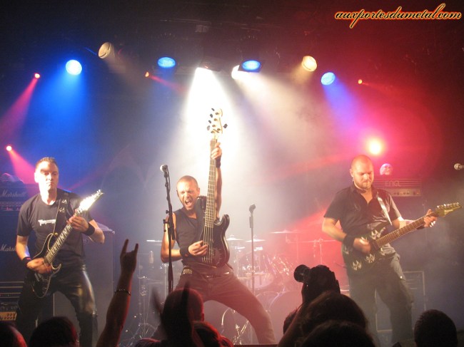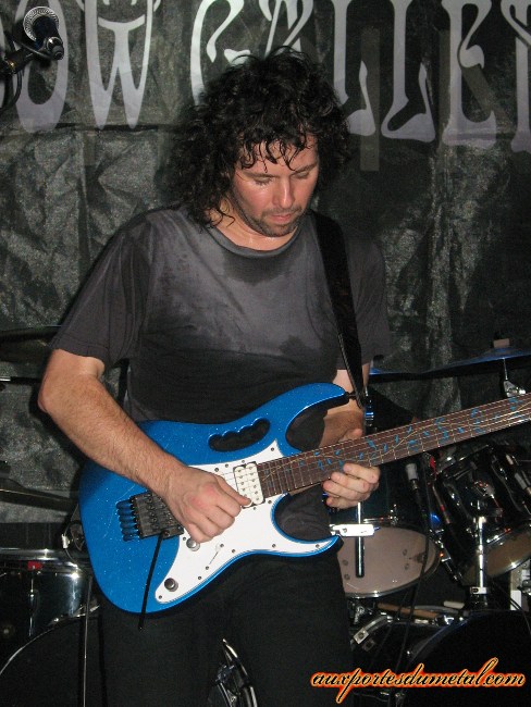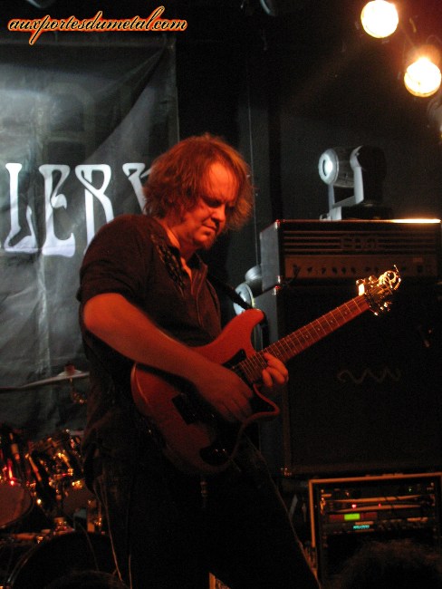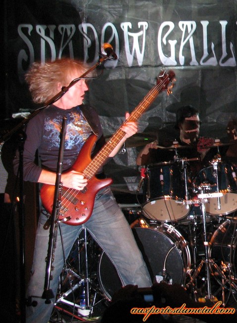 Quand les lumières s'éteignent à nouveau, Bohemian Rhapsody de Queen est diffusée en guise d'introduction. Au bout de quelques minutes, les musiciens de Shadow Gallery montent sur scène et font chanter le public sur ce classique. Voilà une façon bien étrange de démarrer un concert ! L'ambiance est chaleureuse et décontractée, on est curieux de découvrir ce qui va suivre, l'excitation est à son comble. Mais quand même, la prochaine fois, vous pouvez pas choisir une chanson un peu moins longue pour accompagner votre entrée ? Oui, oui, je suis impatient. Mais bon, ça fait quand même quinze ans que j'attends une visite des Américains... il faut me comprendre. A quelques secondes du début du concert, de multiples interrogations se bousculent dans ma tête. "Mais que va donc donner ce groupe culte qui n'a jamais tourné auparavant ?" et "Ne sommes-nous pas promis à une certaine déception ?" sont certainement celles qui me hantent le plus. Mais les doutes et les questions sont vite balayés. Les musiciens attaquent leur set en faisant honneur à l'un de leurs plus beaux albums: le remarquable Tyranny. Ce sont donc Stiletto In The Sand, War For Sale et Mystery qui ouvrent le bal, sous les acclamations d'un public visiblement ravi. Et comment pourrait-il en être autrement ? La vérité s'offre à nous comme une évidence: le groupe assure ! Les titres s'enchaînent, et on reste bouche bée devant la performance des Américains. Gary Werhkamp manie la guitare et les claviers avec autant de dextérité, Joe Nevolo martelle ses fûts avec adresse, précision et force, Carl Cadden-James se déchaîne sur sa basse et possède une présence scénique indéniable... Les autres ne sont pas en reste. Brendt Allman, tout sourire, nous balance des soli pour le moins impressionnants. On notera que, dans un souci de recréer au mieux la richesse des compositions du groupe, un troisième guitariste, jouant également des claviers, a été engagé pour épauler le groupe. Quant à Brian Ashland, à qui incombe la tâche de succéder au regretté chanteur Mike Baker (mort il y a maintenant deux ans), il s'en sort également avec les honneurs. Le bougre, pensant peut-être qu'il n'y avait pas assez de guitares sur scène, ira en agripper une à quelques rares occasions, histoire de nous montrer que lui aussi possède plus d'un talent.