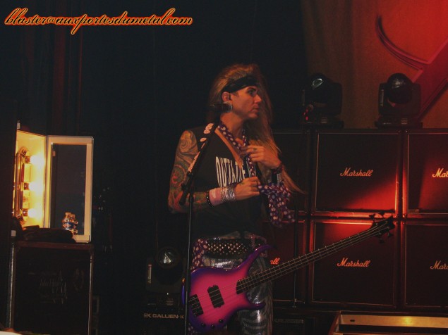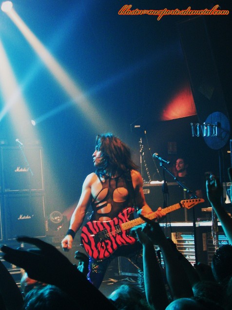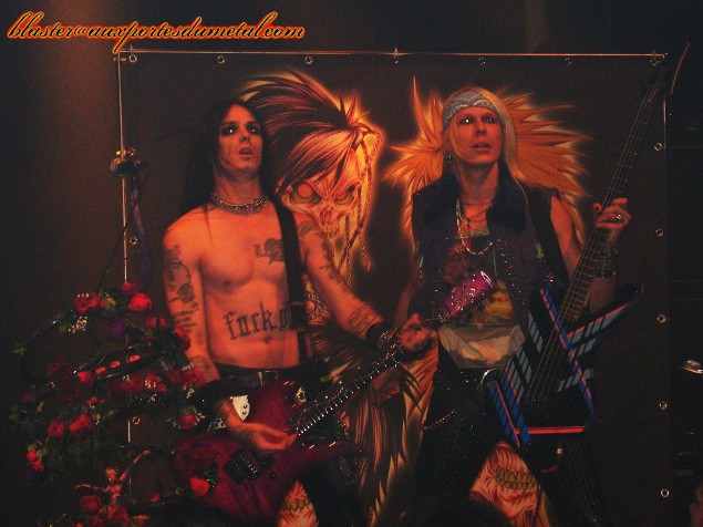 J'avais bien dit à la fin du live report consacré au premier concert français de Steel Panther (en mars dernier) que nous devrions revoir ce groupe chez nous et que je ne manquerais cela pour rien au monde. Je suis un homme de parole et je me suis donc rendu au Bataclan le 30 octobre dernier afin d'assister au retour des panthères d'acier. Pour la date parisienne, ce sont les français de BlackRain qui ont pour devoir de chauffer la salle. Tâche dont ils s'acquittent avec une certaine ardeur, il faut bien le reconnaître. Quand ils débarquent sur scène, le choc est d'abord visuel. Un choc qu'on qualifiera de capillaire. On dirait que le guitariste et le batteur se sont mis en tête de concurrencer le Steve Stevens de la grande époque (vous vous souvenez de la vidéo de l'hymne du film Top Gun ?) ou les plus récents Tokio Hotel. Bon, tout cela est bien marrant mais on s'en fiche un peu, non ? Oui, sauf que ça a le mérite de planter le décor d'une musique hard rock glam décomplexée et bien colorée. J'avais déjà vu BlackRain en première partie de Europe début 2010 et sans les avoir trouvé mauvais, je n'avais pas totalement été convaincu. Ce soir, le constat est un peu le même, mais le groupe n'est pas entièrement responsable... il est desservi par un son assez dégueulasse. Dommage car les compos sont vraiment énergiques. On ne distingue pas bien les lignes de chant de Swan, et il n'est pas toujours aisé de bien comprendre les riffs de Max non plus. De là où je me trouve, le chant ne me semble pas bien puissant et ne colle pas toujours très bien à la musique (même d'un point de vue mélodique)... mais encore une fois, le son est tellement mauvais que Swan n'y est peut-être pour rien. Cela ne me permet pas de rentrer tout de suite dans le show, assez sympathique par ailleurs, des Français. Cela dit, au fur et à mesure que la soirée avance, l'énergie du groupe est contagieuse, l'ambiance dans la salle est plutôt bonne et je commence à me laisser convaincre. La fin du set, avec les convaincantes Innocent Rosie, She's In Love et une reprise bien balancée du Twist and Shout des Beatles, achèvera de me donner une impression un peu plus positive... Mais je ne sais pas... il me manque toujours quelque chose. En tout cas, sachez que les BlackRain semblent avoir fait bonne impression et qu'ils reviendront en janvier prochain en co-tête d'affiche avec Koritni. A suivre...