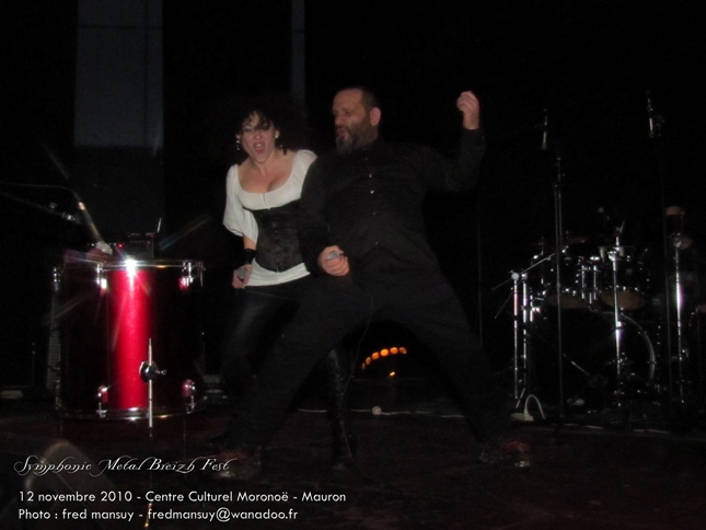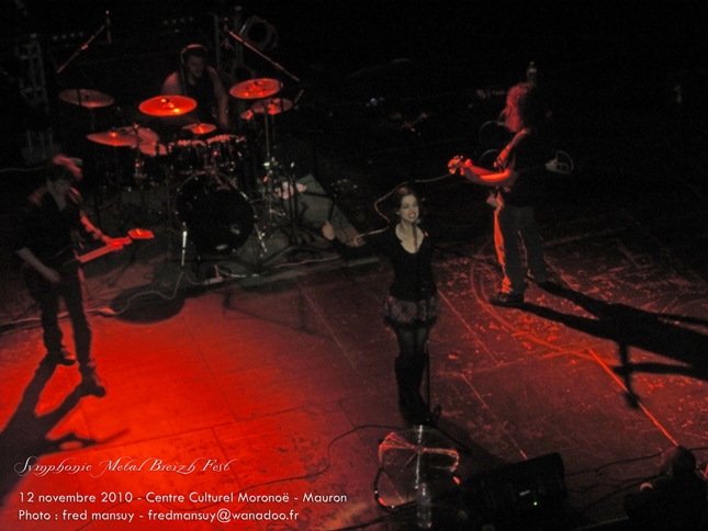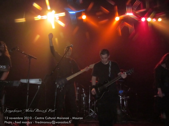 Le 12 novembre 2010 se déroulait le festival Symphonic Metal Breizh Festival, qui n'a de Breton que sa localisation dans une petite ville du Morbihan, Mauron. Le centre culturel de la ville accueillait sept groupes pour un après-midi placé sous le signe de metal plus avec chanteuse que symphonique. Malheureusement pour les groupes et l'organisation, il y eu un cruel manque de public. La faute aux autres événements musicaux du week-end, et peut-être aussi le manque de noms très important de la scène française sur cette affiche ! Il faut rappeler que Whyzdom devait participer à ce festival, mais qu'avec leur recherche de chanteuse, le groupe s'est vu obligé d'annuler sa venue, faisant perdre ainsi au Symphonic Metal Breizh Fest un nombre conséquent de spectateurs. Quoiqu'il en soit, après des problèmes de balance, le fest a commencé avec plus d'une heure de retard. Et c'était à Whisperium de se produire en premier. Le groupe Parisien a malheureusement souffert d'un son très mauvais, de problèmes de retours, de micro et des larsens plus qu'audibles pour tous les instruments, micro compris. Pas facile pour la chanteuse, Julie de ne pas montrer son mécontentement face à cette situation, surtout que ce n'était pas la meilleure manière de célébrer une première prestation scénique. Ce n'est que sur la fin du set, après quelques encouragements de la part du public, que la jeune fille s'est sentie plus à l'aise, sa voix étant un peu libérée du stress. On regrettera donc tous ces soucis techniques ayant ennuyé le groupe et la chanteuse qui au vu du peu que l'on a pu entendre ont un fort potentiel. La prochaine fois, ça ira mieux, on leur souhaite et avec plus d'assurance et d'expérience, le groupe fera sûrement de meilleures prestations.