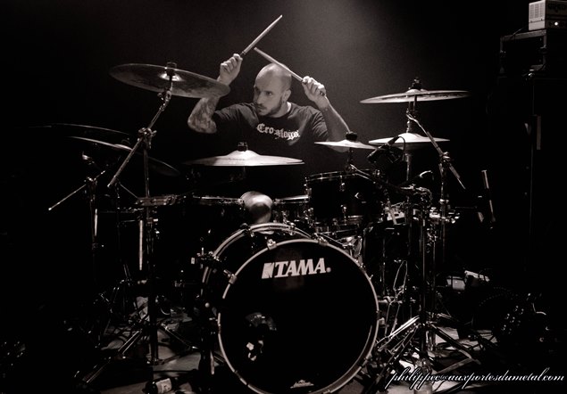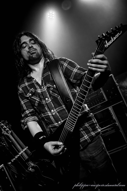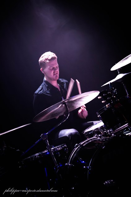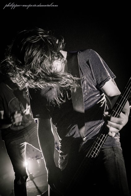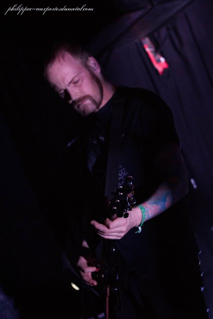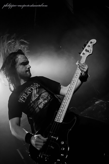 Voila le tour d'Hacride ! Tout d'abord Florent Marcadet prend place derrière ses fûts, puis il est suivi du guitariste Adrien Grousset et du bassiste, le tout dans le noir complet, les trois Français entament leur set avec le titre Introversion en guise d'intro, puis ils sont rejoints par le chanteur Luiss Roux, sur les premiers couplets qui sont en chant clair, on le sent en place mais il n'est pas aidé par le son, il remettra vite les choses en place sur les vocaux hurlés ! Hacride enchaîne avec Strive Ever to More, Synesthesia puis Overcome. En fait ces quatre premiers titres sont extraits de Back to Where You’ve Never Been, leur excellent nouvel album. Luiss parle peu entre les titres à part pour nous sommer de bouger nos popotins ! C'est un vrai meneur, cela se sent, lui et ses potes nous font remuer les testons, cela headbangue à donf sur leur death à la fois atmosphérique et ultra brutal. Sur les skuds que sont Perturbed et Act Of God, la partie du public qui se trouve devant pogote à fond. C'est tellement violent que certains fans se retrouvent même propulsés sur scène aux pieds des musiciens. Pour le titre final, My Enemy, second extrait de Lazarus, les fans du groupe explosent, et le Korigan avec ! Dans l'ensemble même si je n'ai pas autant apprécié ce set que celui de Shining, Hacride nous a proposé un show scéniquement et techniquement irréprochable, avec une énergie communicative. Un petit bémol : le choix des titres de la setlist avec seulement deux titres de Lazarus sur sept... c'est peu !