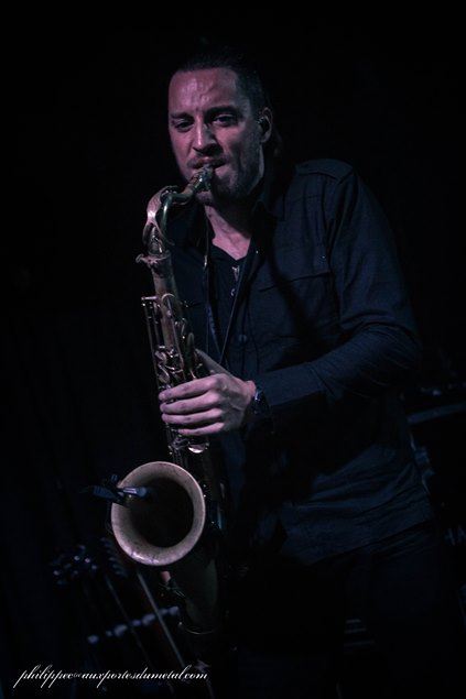 Le public quitte enfin le bar, c’est au tour de Shining de monter sur scène ! Les Norvégiens entament leur set avec le bouillant Healter Skelter, titre extrait de Blackjazz. Le Korigan monte très vite en température grâce à ce brûlot ! La soixante-dizaine de personnes présentes ce soir se rend très vite compte que Shining est vraiment taillé pour le live. L'énergie déployée et l'intensité émise par le groupe sont telles que l'on se sent comme happé par un tourbillon sonore ! Le chanteur multi-instrumentiste Jorgen Munkeby (guitare, saxo) qui a un charisme incroyable, fait chavirer le Korigan à chacune de ses interventions au saxo, ce qui a pour résultat de mettre le public en totale transe ! Les bonnes choses ont toujours une fin, Shining termine sur I Won't Forget, ce final est à la fois époustouflant et frustrant car le groupe après un bon moment d'improvisation qui mit le feu au Korigan, coupe d'un coup le son nous laissant comme des âmes en peine ! Putain, quelle gifle nous avons prise dans la gueule ce soir ! Les Norvégiens n'ont pas laissé de répit au public, ils ont enchainé les titres de façon fulgurante donnant la priorité à leurs deux derniers bébés que sont Blackjazz et One, One, One. Il va être compliqué à Hacride de passer après cette furia norvégienne... à ce moment-là de la soirée, je leur souhaite bonne chance !