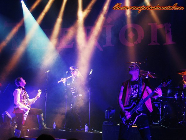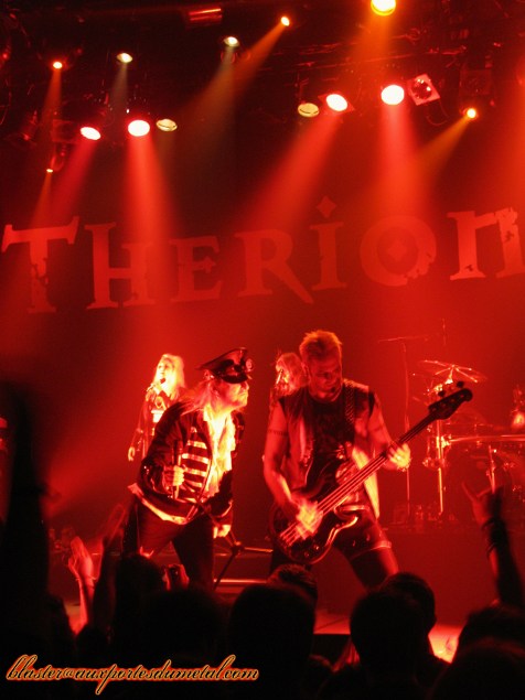 En 2007, Therion avait déjà fait une tournée anniversaire qui passait par la France. Il y a deux ans de cela, le groupe était passé à l'Elysée Montmartre à l'occasion de la sortie de Sitra Ahra. Alors, lorsque le groupe a annoncé une nouvelle tournée, mais cette fois-ci à l'occasion des vingt-cinq ans du groupe, le public y a peut-être vu une redite de la tournée évènement qui avait eu lieu cinq ans plus tôt. C'est du moins l'une des raisons que l'on peut avancer au fait que la date ne soit pas complète. A moins que les deux premières parties, Elyose et Antalgia n'aient pas aidé à remplir la salle comme c'est souvent le cas, les groupes n'étant assez connus du public ? Ou alors le passage de Soulfly le même soir dans une autre salle parisienne ? Ou encore parce que le groupe, généreux, ne se contente pas d'un seul passage à Paris et se promène de-ci, de-là en France ? Pourtant, un mois avant le premier octobre, Christofer Johnsson a fait une annonce qui aurait pu ébranler les fans et faire de cette date, mais aussi de la tournée, un évènement à guichets fermés. En effet, la tournée "Flowers of Evil" est la dernière que commet le groupe avant un nombre d'années indéfini, Therion prenant un autre virage, démarré avec l'album en vente lors de la tournée : Les Fleurs Du Mal. Dernière occasion de voir Therion avant longtemps, ce n'était donc pas une occasion à manquer. Après deux premières parties pas très emballantes, notamment à cause d'un son assez mauvais (le son du micro de la chanteuse d'Elyose étant particulièrement à remettre en cause !), Therion se montre enfin pour le plus grand plaisir du public qui est chaud-bouillant ! Parfois même un peu trop : des "hey, hey" placés sur des passages softs dans la soirée, un emballement qui forcera Thomas Vikström à accélérer son rythme lorsqu'il appelle un public qui ne sait pas ce qu'est le rythme à taper dans les mains, mais qui reprendra en choeur les riffs de Son Of The Sun jusqu'à The Blood Of Kingu en passant par Vanaheim. Soit un public très présent qui répond positivement à toute la setlist ou presque. Le ton est donné dès le début du concert avec O Fortuna en guise d'intro, ce soir il y a du niveau vocal, Thomas et Lori Lewis sont dans la place ! Un nouvel album sur le point de sortir oblige (le 19 octobre), on a droit à quelques titres, dont Poupée de Cire, Poupée de Son. En en ayant fait un titre énergique, qui en plus de cela est connu par une grande partie, voire la totalité du public, le titre ne fait pas tâche et est même repris par l'assemblée. On assistera à la première petite mise en scène de la soirée, Thomas et sa fille Linnéa - qui a rejoint le groupe l'an dernier - retire la veste de Lori, qu'elle remettra bien vite après, le Bataclan n'étant, contrairement à son habitude, pas un sauna. On regrettera d'ailleurs cette mise en scène un peu timide, trop absente. Bien que Thomas se fasse vampire sur The Khlysti Evangelist, qu'il joue le rôle d'un homme un peu hautain, fier et regardant sur tout, bien qu'il y ait des déplacements un peu hagards, que Lori joue avec le batteur, il manque de la folie. C'est ce qu'apportait le personnage de Snowy Shaw, qui au MFVF l'an dernier s'était présenté sur scène avec un livre, avait enchaîné Linnéa à une chaise, etc. Cependant, la jolie Johana Naila rejoindra Therion sur trois chansons pour de la danse orientale et mettre un peu d'animation sur scène. Celle qui officie aux côtés d'Orphaned Land se livre à un exercice plus ou moins apprécié. En effet, de plus en plus de groupes font appel à des danseuses du ventre et parfois pour pas grand-chose (Kamelot en tête), mais avec Therion, cela colle plutôt bien à cette envie de mise en scène, et même à certains de leurs titres. Le public se prend des claques à chaque chanson, car chanter juste sur un album, c'est presque à la portée de tout le monde et si ce n'est pas le cas on trafique ta jolie voix. Mais sur scène, c'est une autre paire de manche, et ainsi des chanteurs déçoivent. Ici, il n'en est rien, on est même admiratif quand on les entend chanter, à se demander comment ils font pour atteindre certaines notes (oui, d'accord, ils ont une très bonne technique, mais ça n'empêche pas l'admiration). Lori donnera sûrement le plus de frissons au public qui ne peut s'habituer à ce genre de prouesses vocales (le solo de Son Of The Staves Of Times étant à couper le souffle). Thomas, qui se voit "contraint" d'assurer le rôle d'un deuxième chanteur n'est pas en reste et se montre à la hauteur de la tâche qui lui incombe, allant de notes graves à un chant plus lyrique en passant par des cris. Il assure même à la flûte traversière sur deux titres. Quant à la nouvelle recrue, Linnéa, elle va chercher le public et se montre sous un jour dynamique, mais elle n'emballera pas l'audience, ses capacités vocales étant moindres, et étant moins exubérante que Katarina Lilja qu'elle remplace. Cependant, avec le départ de Snowy, qui aurait assuré les appels au public si elle n'avait pas été là ? On voit mal Lori et Thomas le faire en plus du reste. Les coups de mou du public apparaîtront sur J'ai Le Mal de Toi qui suit un The Flight Of The Lord Of Flies assez longuet et peu entraînant et sur Une Fleur Dans Le Coeur, introduit en français par Linnéa. Le fait que ce soit des reprises françaises a peut-être joué, cette décision ayant été assez décriée (et ce n'est certainement pas fini). Pourtant, une fois de plus, on a la démonstration du talent fou dont Therion bénéficie actuellement. Christofer parle d'ailleurs de cet album à deux reprises dans la soirée : la première pour nous expliquer la vie de Betty Mars, chanteuse originelle de J'ai Le Mal De Toi (que les choses soient claires, ce n'est pas de François Feldman, il faut arrêter avec ça !), en disant aussi que si les Français ne comprennent pas sa démar