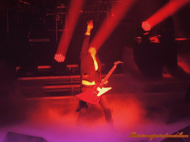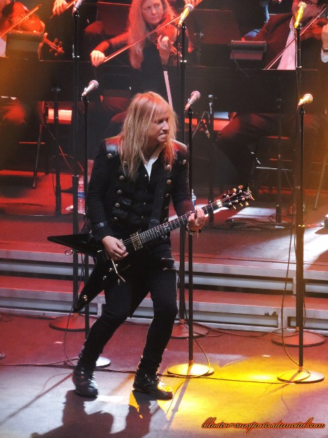 Trans-Siberian Orchestra à Paris : un pari risqué, une réussite partielle... mais il fallait y être. Et donc j'y étais. Verdict : un peu de frustration, un peu de magie, un peu de déception, de la classe, du kitsch aussi... Mais j'ai bien fait. Je ne regrette pas de m'être déplacé. D'autant plus qu'il n'est pas certain qu'un tel événement se reproduise de sitôt. Commençons par le commencement... et le contexte. Trans-Siberian Orchestra à Paris ?! Voilà bien quelque chose que je ne pensais jamais voir. On ne peut pas dire qu'un travail de promo très important ait été fait sur ce projet (créé par Paul O'Neill et Jon Oliva de Savatage, rappelons-le) en France depuis des années. TSO, ça cartonne aux USA, principalement. Et tout d'un coup, on nous annonce une date chez nous... et à l'Olympia qui plus est ! C'est une vraie surprise. Et quand j'apprends la nouvelle, je me réjouis... Pas vraiment parce que je suis fan de TSO (car, en toute honnêteté, même si je possède trois de leurs disques et que j'apprécie beaucoup certains de leurs morceaux, je ne le suis pas) mais plutôt parce que je suis un inconditionnel de Savatage, et la perspective de revoir sur scène beaucoup de musiciens de ce groupe mythique, tout en sachant (ou espérant) qu'ils joueront quelques-uns de leurs classiques sur une scène aussi belle que celle de l'Olympia est quelque chose que je ne veux pas louper. D'autant plus qu'on sait bien qu'avec TSO, c'est la grosse artillerie : il y a le groupe bien sûr, mais également les choristes, les violonistes, un light-show somptueux... Bref, le spectacle devrait être au rendez-vous. Sauf que voilà, en même temps que je me réjouis, j'ai peur. Vu la popularité somme toute assez relative de TSO (et de Savatage) chez nous et le prix élevé des places (jusqu'à soixante-deux euros !), je me dis qu'il va y avoir un malaise... si ce n'est une annulation. Et non, le concert ne sera pas annulé. En revanche, il y aura beaucoup d'invitations pour remplir la salle ainsi qu'une opération "soldes hivernales" comme on en a rarement vu (des billets à dix-huit euros au lieu de soixante-deux !). Du coup, en ce soir du 14 janvier, la salle de l'Olympia est correctement remplie, à défaut d'être comble. Tant mieux. Passons maintenant au show. Il commence à 20h30... Mais il me faudra bien du temps pour réussir à rentrer dedans et pleinement en profiter. Pourquoi ? C'est assez simple : comme j'ai un pass photo, on me fait rentrer (ainsi que les autres photographes) quelques instants avant que le spectacle ne commence, mais comme il n'y a pas de fosse pour photographe ce soir (l'Olympia est en configuration assise), on nous place tout en haut de la salle, derrière la console. Et là, nous avons trois chansons pour essayer de prendre un maximum de clichés sachant que nous sommes loin de la scène, que le show débute avec beaucoup de fumée... Bref, les conditions ne sont pas idéales. Et puis, surtout, au bout de quelques titres, on nous fait sortir de la salle (en plein milieu d'une chanson de Savatage, Handful of Rain, aaarrrgghhh...) pour aller déposer notre matériel en consigne. Quelques minutes plus tard, on peut réintégrer la salle et s'asseoir là où il reste des places. Voilà. C'est bien beau tout ça mais pas forcément très intéressant pour vous qui vous demandez ce que valait le concert de TSO. J'y viens. Les conditions que je viens de décrire ne suffisent pas à expliquer pourquoi je n'ai pas réussi à immédiatement accrocher au show des Américains. C'est vrai, la configuration assise n'aide pas. On sait qu'il ne s'agit pas d'un concert de metal mais quand même, c'est de l'opera rock... et ça fait bizarre. Sur scène, il y a des moyens et des musiciens sacrément compétents. Les guitaristes de Savatage, Al Pitrelli et Chris Caffery, sont là. Le bassiste Johnny Lee Middleton et le batteur Jeff Plate (qui proviennent du même illustre groupe) aussi. Aux claviers, on retrouve un certain Vitalij Kuprij (Artension, Ring of Fire). Au chant, il y a du monde : des chanteurs et chanteuses pas forcément très connus du public metal, le grand Jeff Scott Soto mis à part. Tous sont globalement assez excellents dans leur registre, on y reviendra. Visuellement et auditivement, c'est parfois très beau, mais tout cela est réglé au millimètre près, c'est chorégraphié, scénarisé (il y a même un narrateur qui vient de temps en temps faire le lien entre deux morceaux) et, par conséquent, on perd de la spontanéité et de la folie propres à un concert de metal (ou de rock, tout simplement). Pendant la majeure partie du show, il n'y a quasiment aucune communication avec le public. Ce n'est pas franchement interactif, on pouvait s'y attendre. Mais dans le courant de la soirée, les choses évoluent un peu. Et c'est là qu'il faut remercier Chris Caffery. Car le guitariste ne se contente pas de jouer sa partition. Il apporte de sa bonne humeur (il sourit constamment), communique un peu avec les fans, et a une attitude un peu plus hard rock que la plupart des personnes présentes sur scène. A un peu plus de 22 heures, une chose "extraordinaire" va même se produire : le public va se mettre debout le temps d'un instrumental bien mené ! Encouragé par Mr. Caffery justement, l'Olympia se lève de son fauteuil et tape dans ses mains en rythme. C'est sympa, je respire un peu. Et ça se reproduira quelques fois, notamment sur la fin du concert. Tout cela mis à part, il y a du talent et de très belles choses ce soir, sur scène. Mais pas que... Pour ne pas vous donner l'impression que je ne fais que râler, je vais commencer par le positif. Le son est très bon. Le show est bien voire trop bien (arh, j'avais dit "positif") rodé. Les lumières sont assez somptueuses, la scène est plutôt belle à regarder. Il y a des moments de grâce. Les chansons de Savatage bien sûr... Que voulez-vous, on ne se refait pas. Oui, entendre des compos comme This